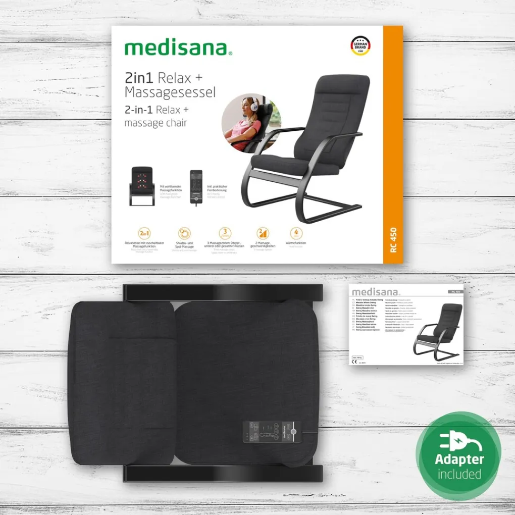 Massages kunnen wonderen doen tegen spanningen en lichamelijke kwalen: ze zijn rustgevend, ontspannen naar wens en maken blokkades in lichaam en geest effectief los. Met de nieuwe Shiatsu Relax Chair RC 450 biedt medisana, de pionier in mobiele gezondheid en marktleider op het gebied van massage, een optimale combinatie van ontspannende massage en modern thuisaccessoire. Met een gerichte massage kan ons welzijn in een handomdraai worden verbeterd.