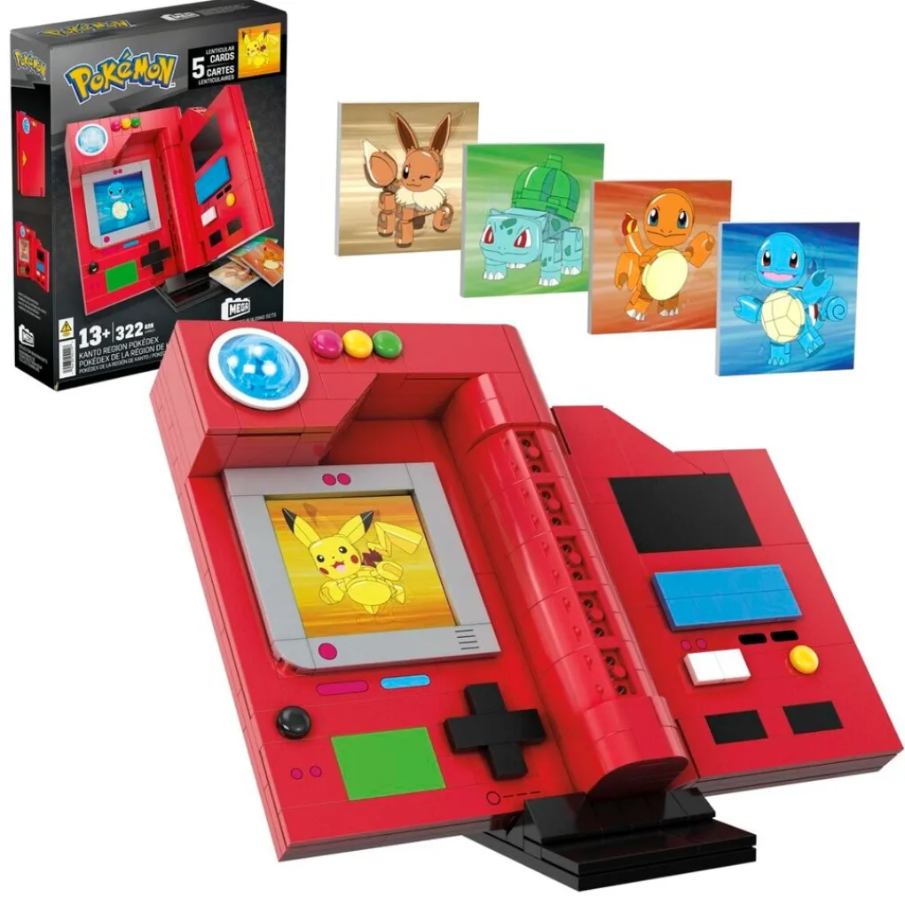 De bouwbare Megabloks Pokémon Kanto Region Pokédex heeft werkend licht en vijf lenticulaire kaarten. Druk op de lichtsteen om je Pokédex te verlichten voor een authentieke look. Hij is geschikt vanaf 13 jaar.