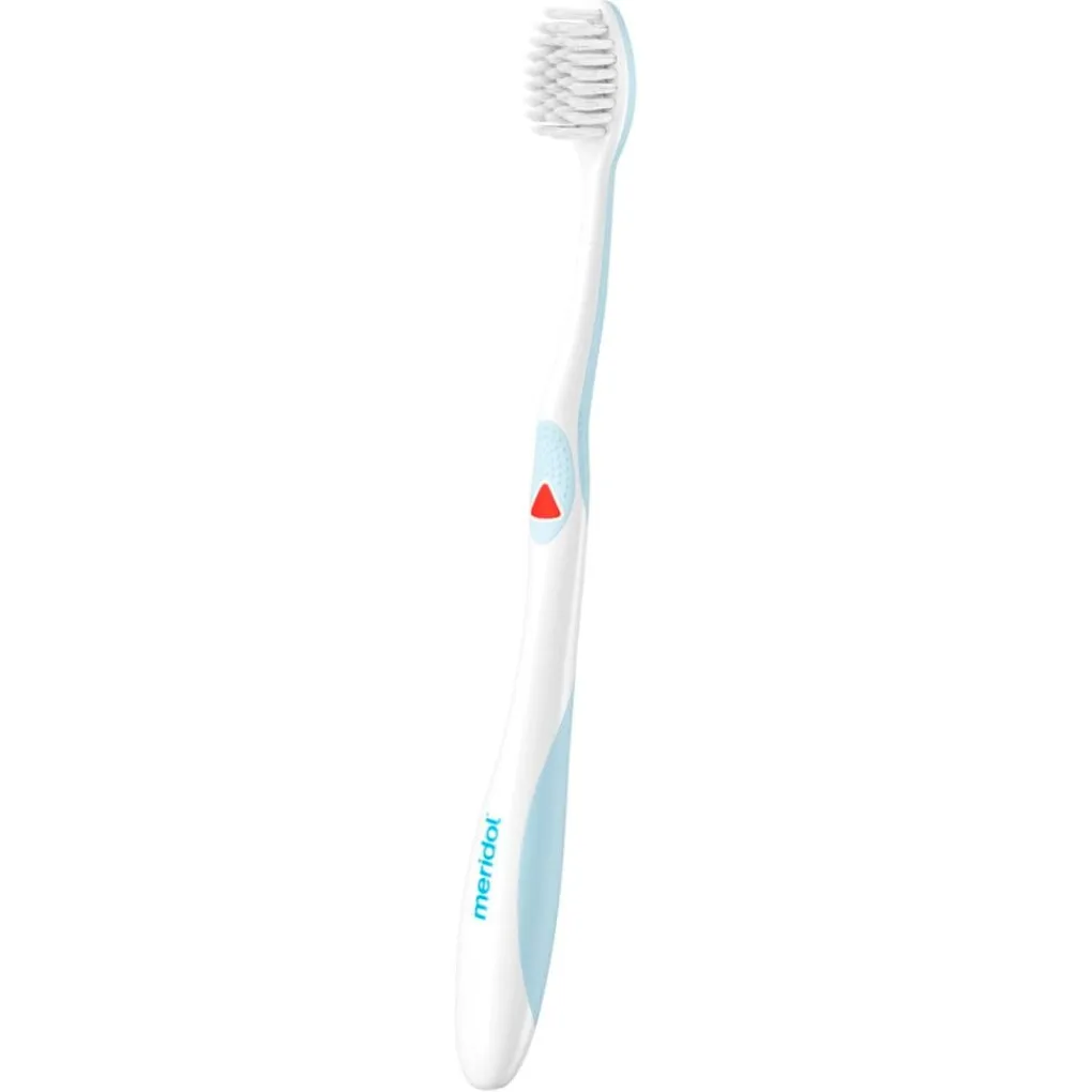 De Meridol Zachte Tandenborstel bevat microfijne borstelharen voor een grondige en zachte reiniging van de tanden en langs de tandvleesrand, zelfs bij geïrriteerd tandvlees.