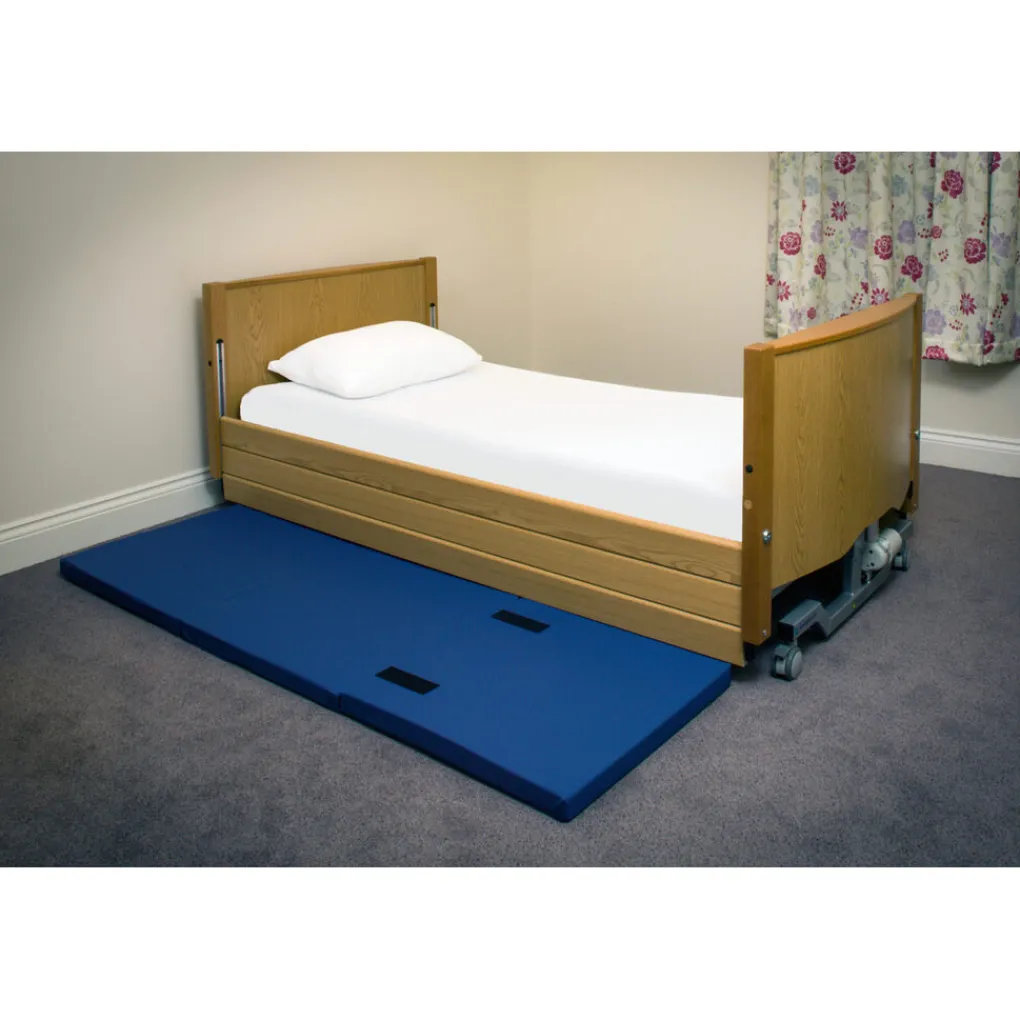 Deze valmat kunt u naast uw bed op de vloer leggen om te helpen voorkomen dat u zich ernstig verwond wanneer u uit bed valt. U kunt het kussen opvouwen wanneer deze niet gebruikt wordt. Zo kunt u deze gemakkelijker opbergen. Om de mat schoon te maken kunt u deze afnemen met een vochtige doek. Deze valmat is uitgerust met hengsels om deze aan op te tillen.