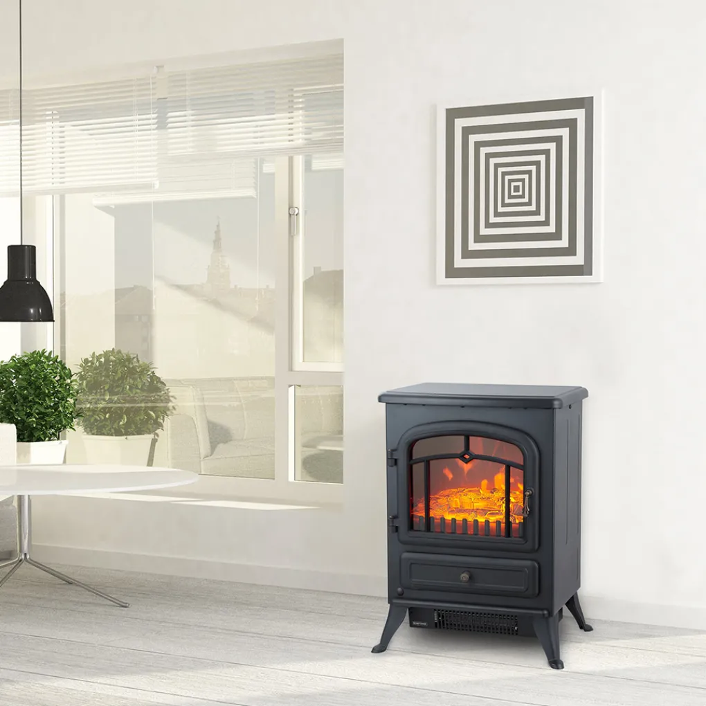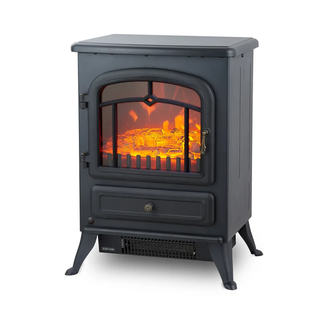 De elektrische kachel van MOA heeft een totale hoogte van 55 cm, een diepte van 28 cm en een breedte van 41,5 cm. Gecombineerd met de stijlvolle, gietijzeren-look past de haard in elk interieur. Hij is groot genoeg om een kamer van maximaal 20 m2 optimaal te verwarmen en klein genoeg om niet al te veel ruimte in beslag te nemen.