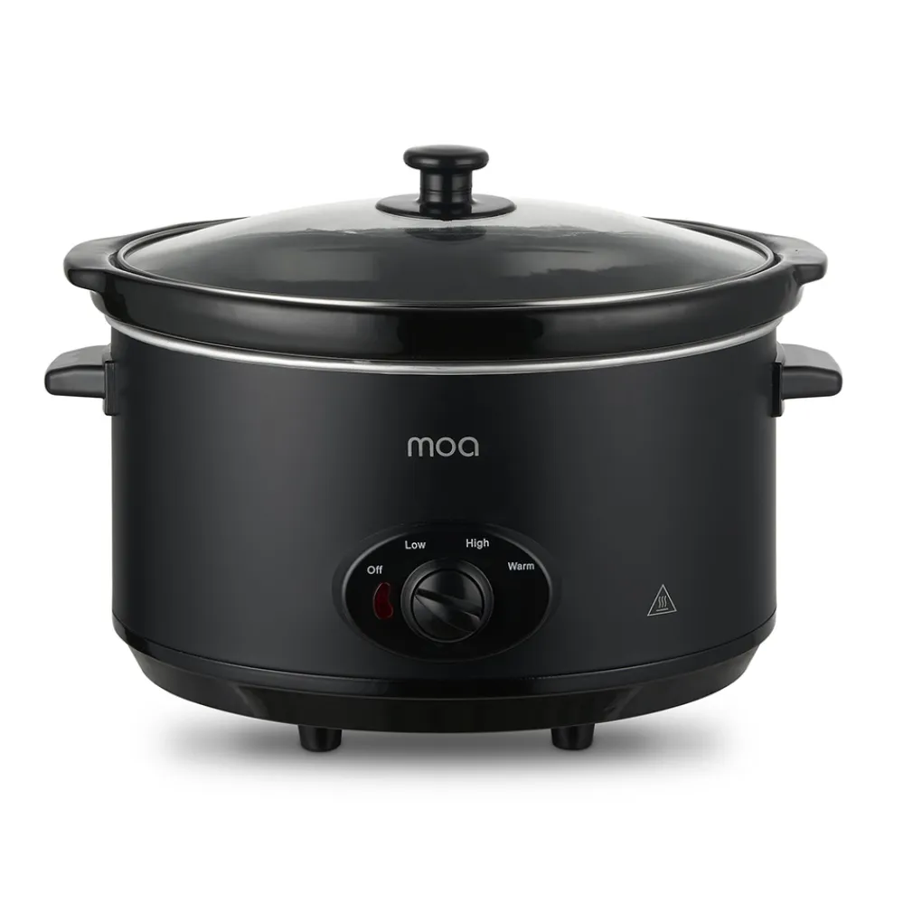 De slowcooker SC65 van het merk MOA is eenvoudig in gebruik. Aan de voorzijde zit een draaiknop waarmee je de gewenste warmtestand instelt. Moet je kiezen voor de lage, de hoge of de automatische warmtestand? Dat hangt af van wat je wilt garen. Vlees blijft heerlijk mals als het lang op een lage warmtestand gegaard kan worden, terwijl groentes hun knapperigheid behouden door deze kort op een hoge stand gaar te stomen. Of kies voor de auto-functie, waarbij de slowcooker geleidelijk schakelt van de hoge naar de lage warmtestand.