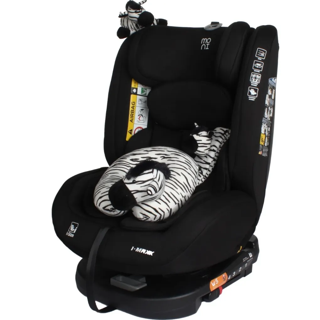 Waarom de Moni i-Maxx een slimme keuze is De Moni i-Maxx maakt het ouderschap net een stukje makkelijker. Dankzij de 360° draaibare zitting hoef je niet meer te bukken of wringen om je kindje veilig in de stoel te zetten. De verstelbare ligstanden zorgen voor optimaal comfort, of je kindje nu wakker is of lekker ligt te slapen. De 13-standen hoofdsteun, het gordelalarm en de luxe memory foam kussens maken deze stoel tot een bijzonder veilige én comfortabele reisgenoot. De zebra-speeltjes zijn een leuke extra die zorgen voor herkenning en plezier tijdens elke autorit. Een slimme keuze voor ouders die op zoek zijn naar gebruiksgemak én topkwaliteit in één!