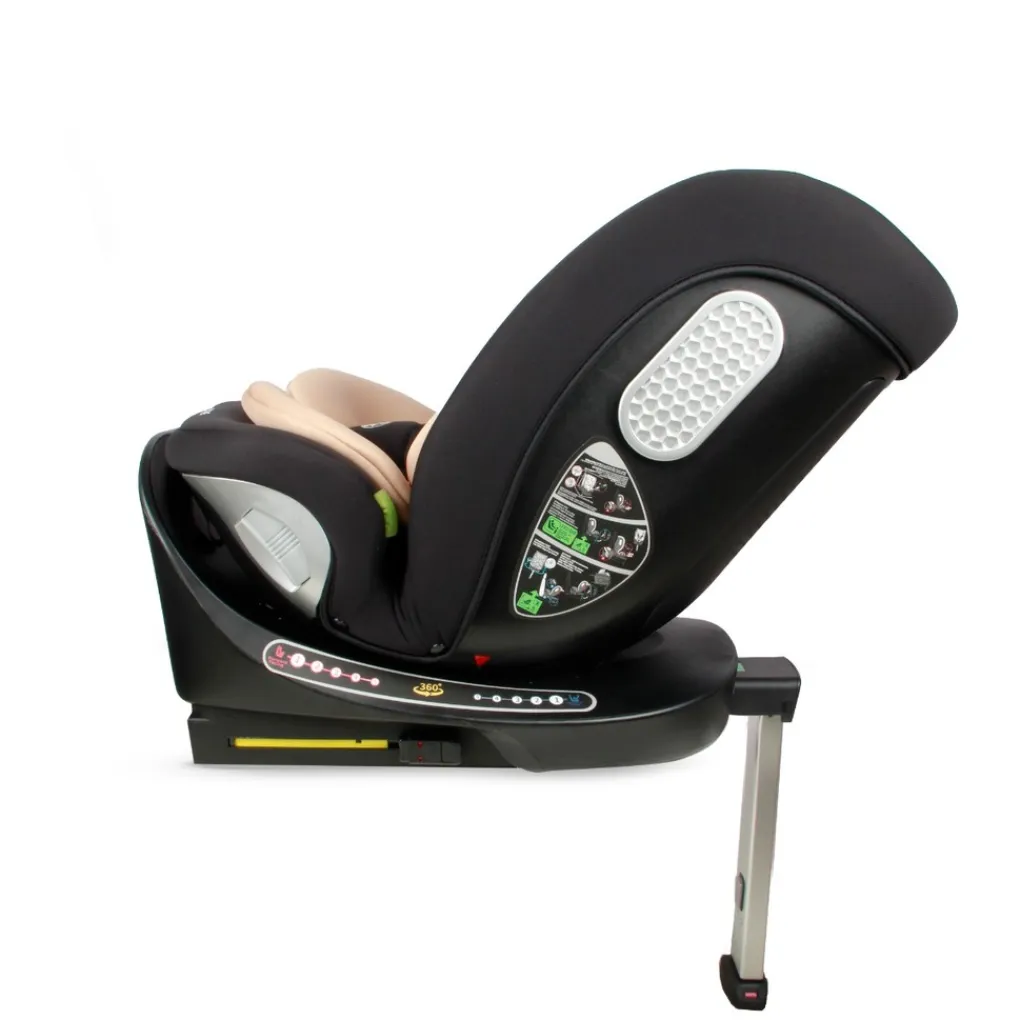 Dankzij het 360° draaibare zitje van de Strike plaats je je kindje met het grootste gemak in de stoel en haal je hem of haar er net zo makkelijk weer uit, zonder te wringen of te tillen in een onhandige hoek. Hij is draaibaar in élke fase, doordat je hem bevestigt met Isofix en een steunpoot!