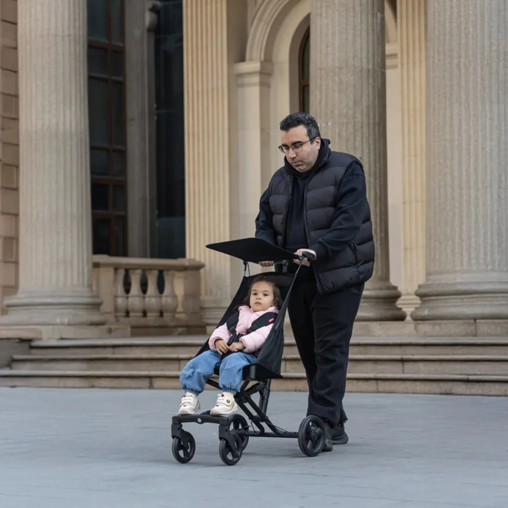 Dankzij het slimme opvouwbare frame neem je de buggy moeiteloos mee op reis of berg je hem thuis gemakkelijk op. Het compacte formaat past zelfs in kleine kofferbakken of kasten – ideaal voor onderweg of in de stad.