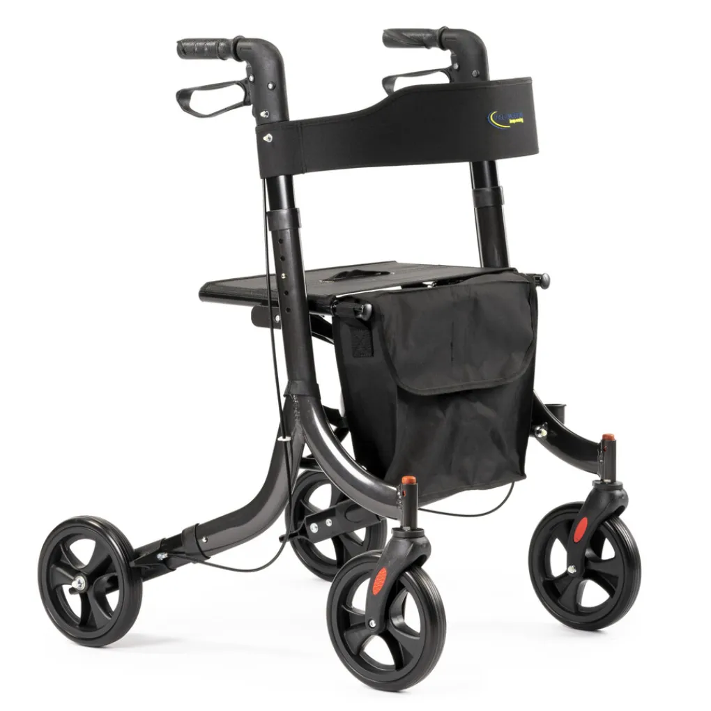 De rollator ligt is een handige en mooie rollator die zeer licht van gewicht is, door het aluminium frame. U kunt door het lichte gewicht de rollator gemakkelijk opvouwen. Wanneer de rollator opgevouwen is kunt u deze gemakkelijk vervoeren of opbergen. De rollator heeft goede handremmen en een parkeerrem, zodat u deze gemakkelijk even weg kan zetten zonder dat de rollator wegrolt. De parkeerrem komt ook goed van pas wanneer u even wilt zitten om uit te rusten van bijvoorbeeld een wandeling. Dit is goed mogelijk vanwege het comfortabele zitgedeelte en de stevige rugband die deze rollator heeft. Tot slot heeft deze rollator ook nog een handige afsluitbare rollatortas, waarin u spullen kunt opbergen en meenemen. Dit product is een medisch hulpmiddel.