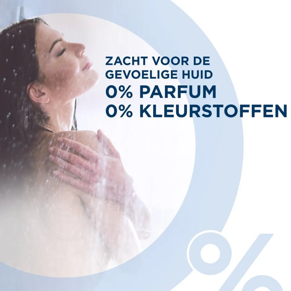 • Een milde douchegel met 0% parfum en 0% kleurstoffen