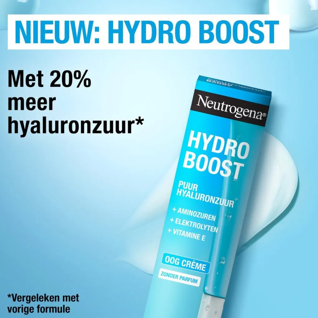 De Neutrogena Hydro Boost oogcrème zorgt voor direct frisse ogen en is ontwikkeld in samenwerking met dermatologen.