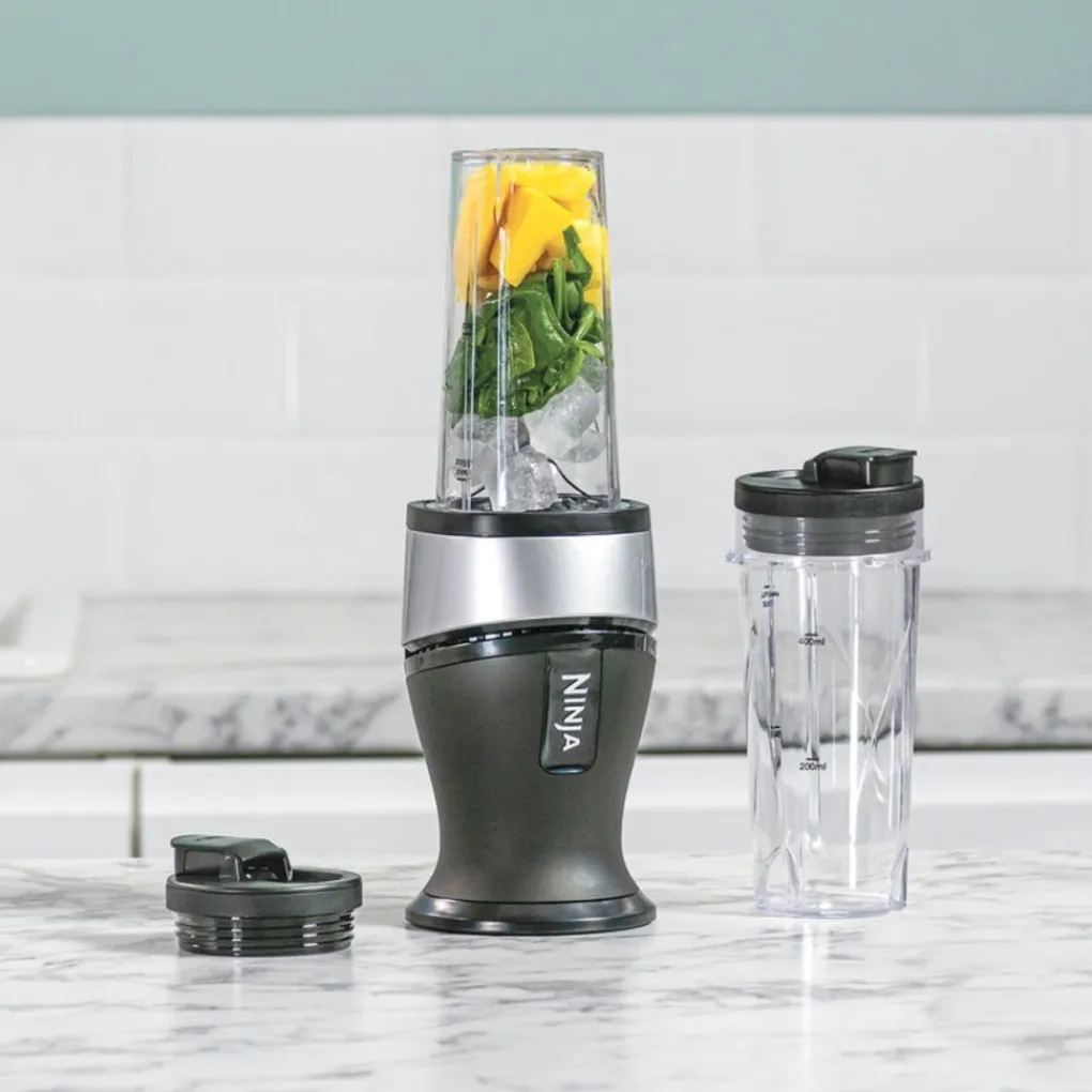 Deze compacte Ninja Blender & Smoothie Maker combineert een krachtige 700-watt motor met Ninja’s precisie-ontworpen messen, die gemakkelijk hele vruchten en groenten, noten, zaden en zelfs ijs mengt. Compleet met twee BPA-vrije vaatwasmachinebestendige bekers en to-go deksels, is het gemakkelijk om onderweg van je favoriete drankjes te genieten.