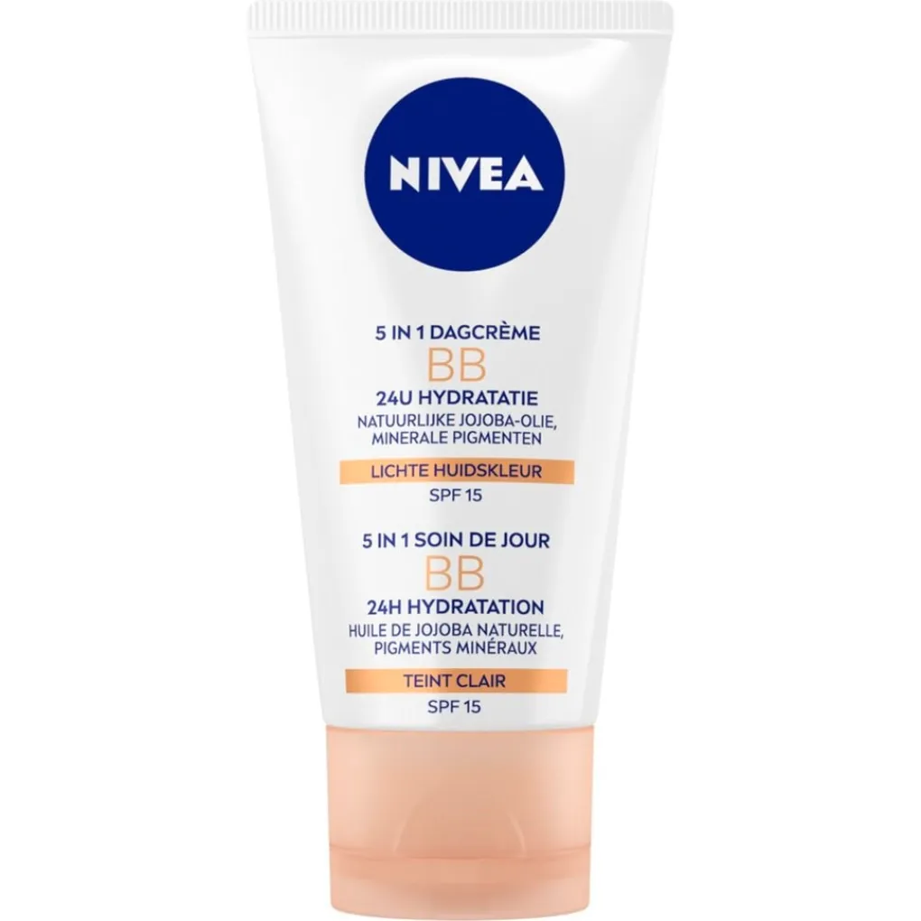 De NIVEA 5-In-1 SPF15 Lichte Huidskleur BB Cream is een getinte crème die je huid niet alleen verzorgt, maar die ook kleine imperfecties camoufleert.