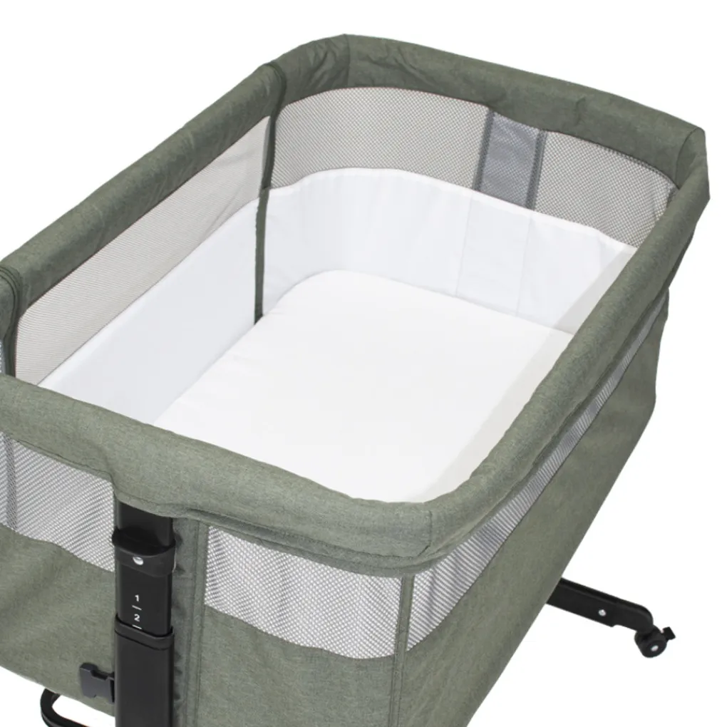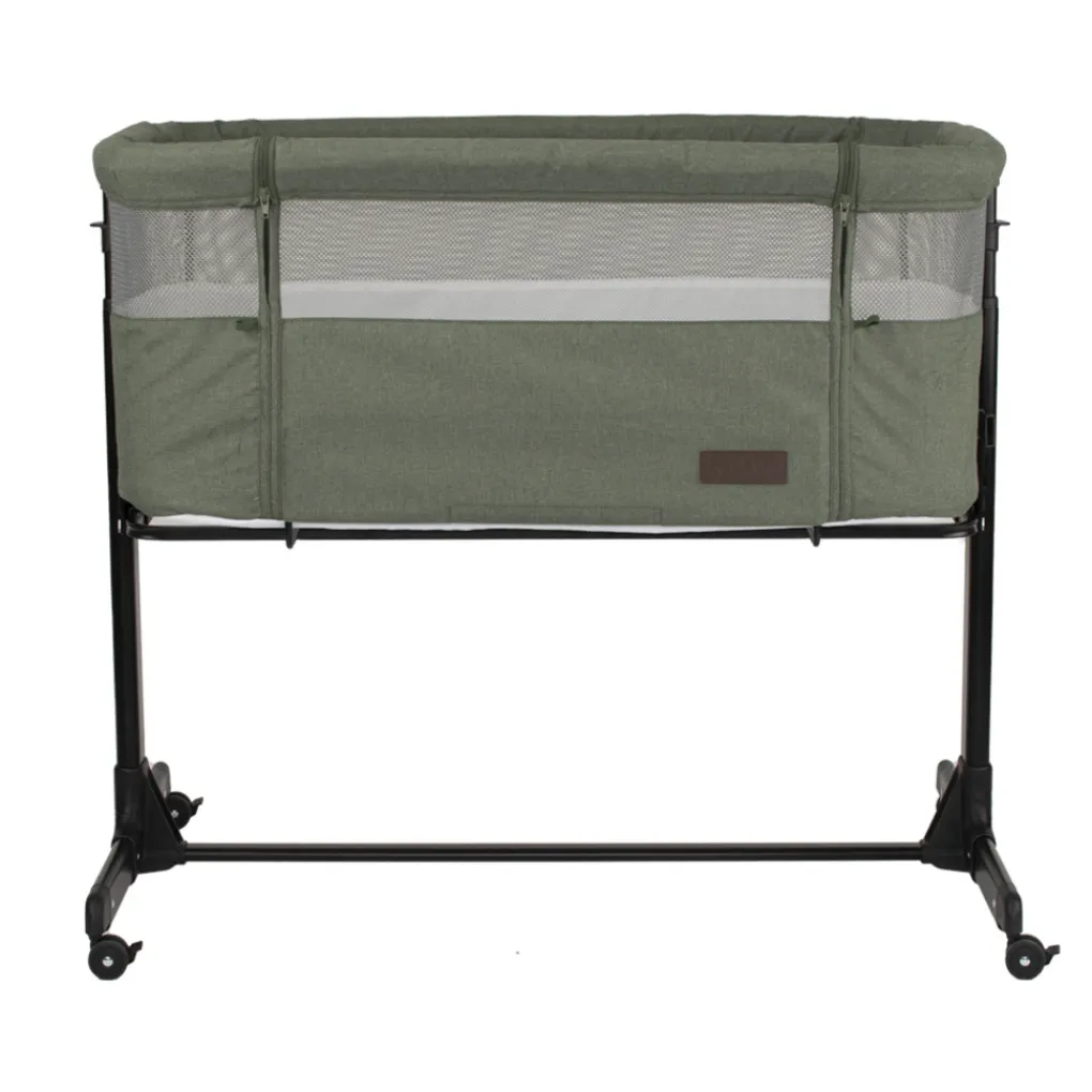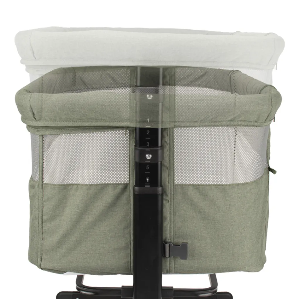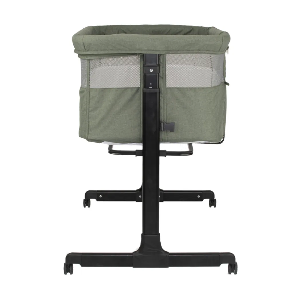 De co-sleeper staat op een stevig frame welke is voorzien van wielen zodat je de wieg ook eenvoudig verplaatsen. De wieg is aan beide zijdes volledig verstelbaar, zodat de wieg altijd een goede aansluiting op het ouderlijk bed heeft. Het frame heeft ook een anti-reflux functie; wanneer je de zijde waar je kindje met het hoofdje ligt hoger zet dan de voetjes, is de kans op reflux kleiner waardoor je kindje minder last kan hebben van buikkrampjes.