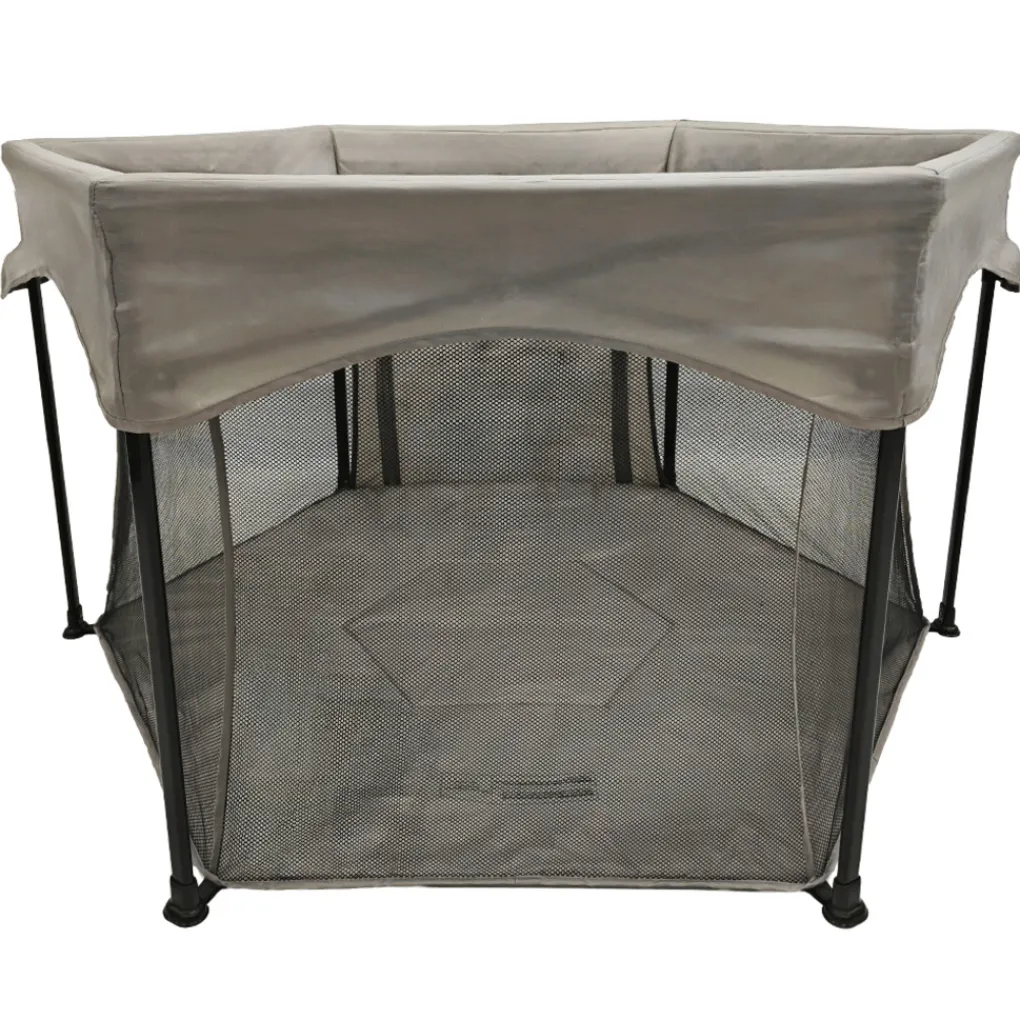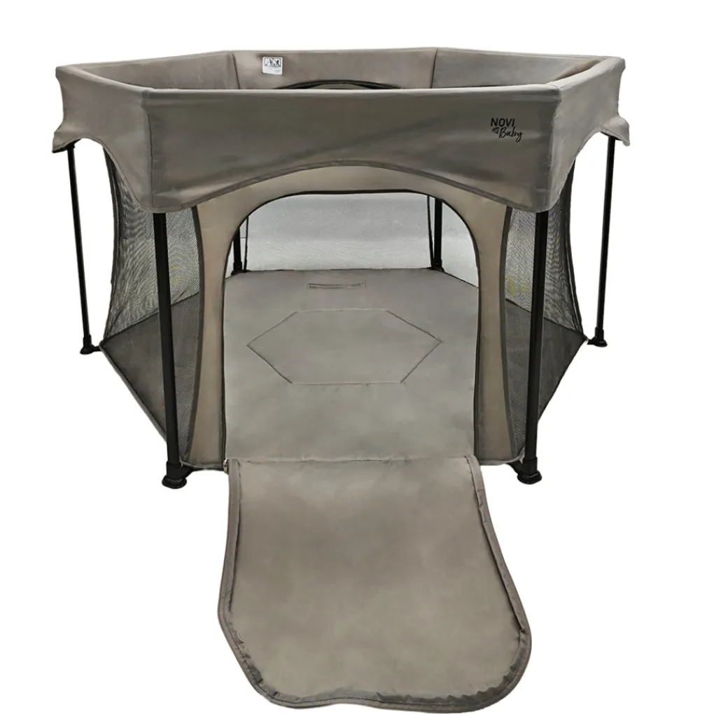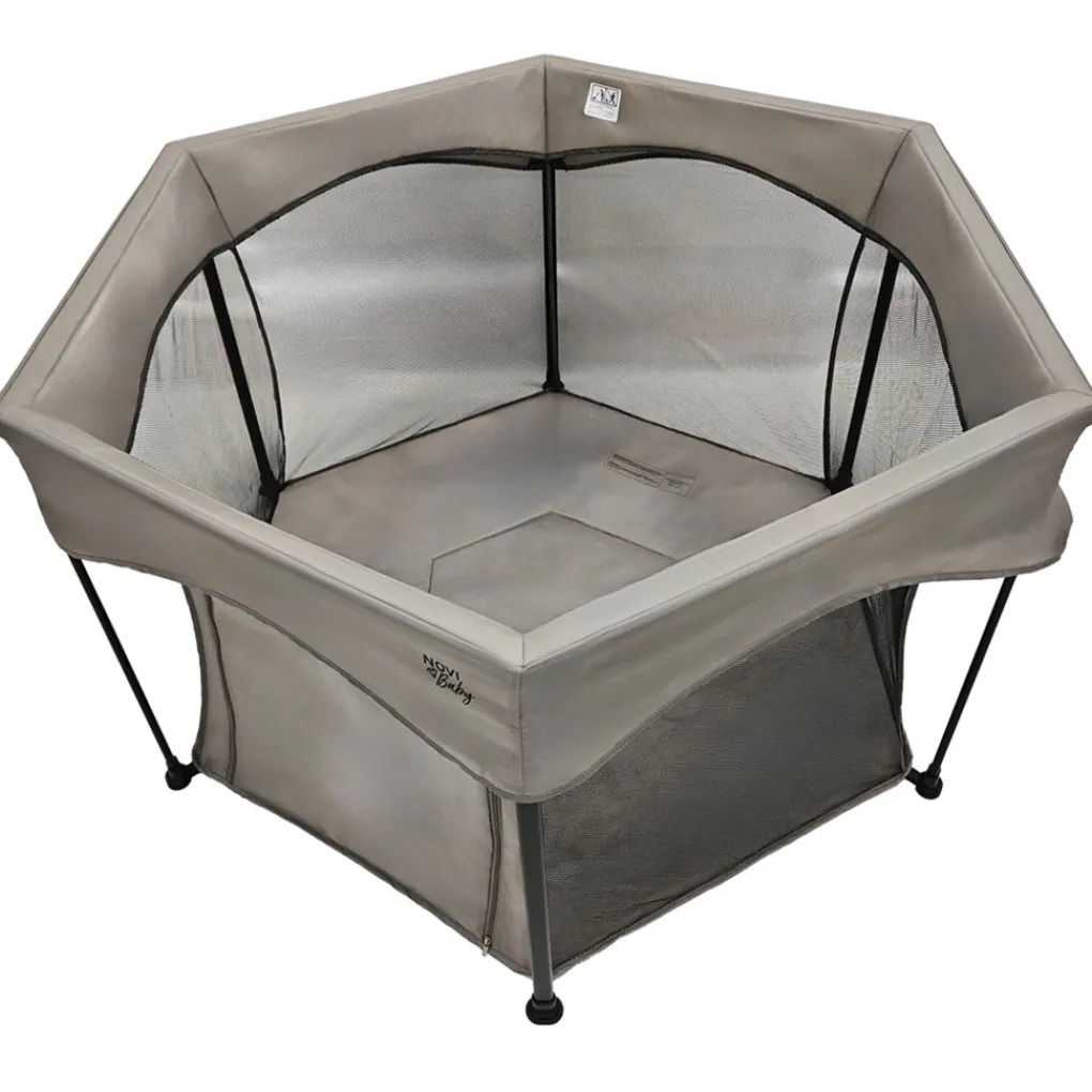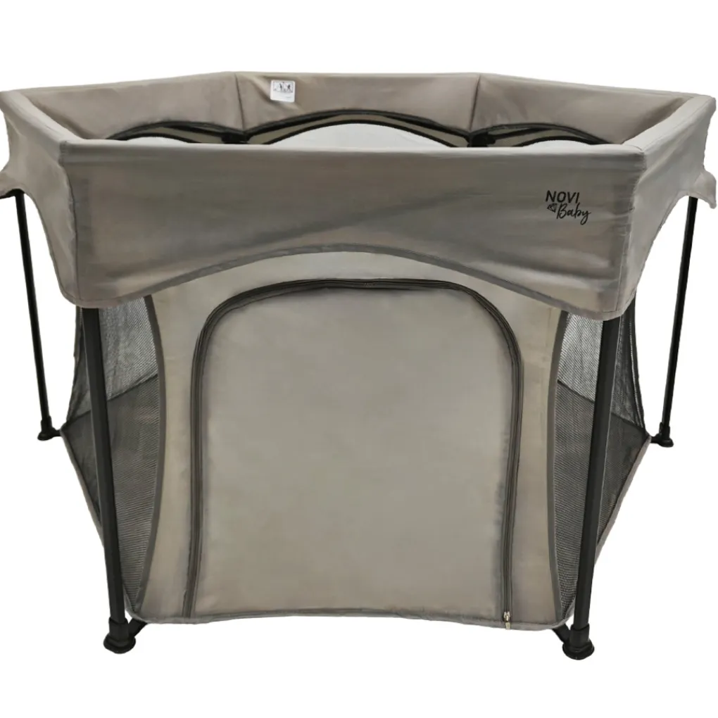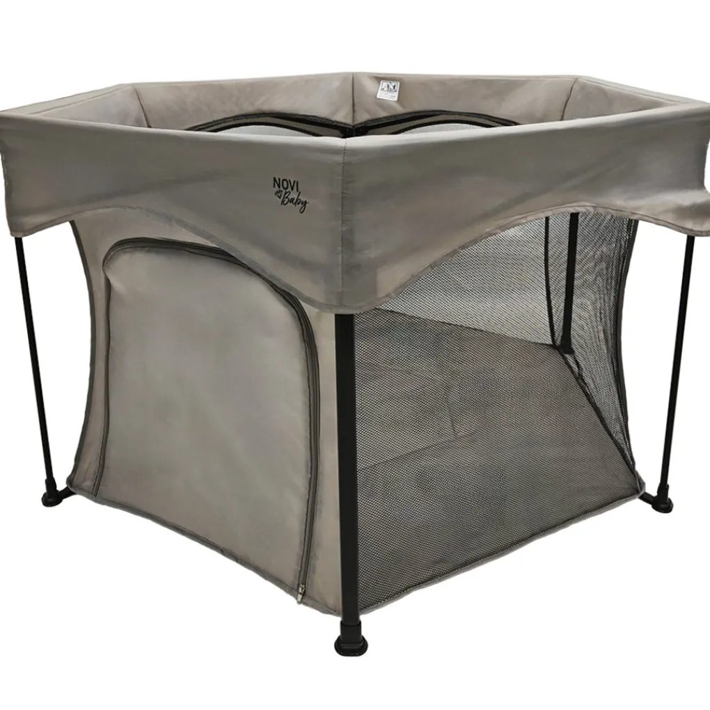 Op zoek naar een box die je wél makkelijk mee kunt nemen? De zeshoekige speelbox Kelly van Novi is ideaal hiervoor. Deze speelbox kan je namelijk zo inklappen en meenemen, handig voor op vakantie, bij de oppas of gewoon thuis of in de tuin als er niet zo veel ruimte is. Door het handige open te ritsen vak aan de voorkant kan je kindje makkelijk zelf de speelbox in kruipen. De zijkanten van de box bestaan volledig uit mesh luchtdoorlatend materiaal, extra veilig voor je kindje. De pootjes hebben anti-slip materiaal, zo blijft de box ook zeker stevig staan. De box kan gebruikt worden om in te spelen of in te liggen, maar is niet geschikt om in te slapen.Eigenschappen