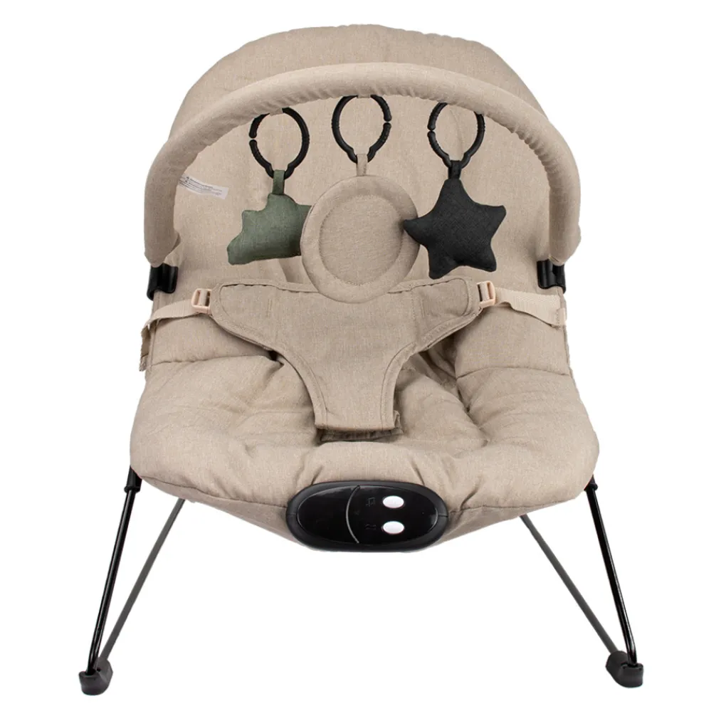 De wipstoel is voorzien van 8 vrolijke melodieën. Wanneer je op de muziekknop drukt, kun je het liedje op 3 verschillende volumestanden zetten. Druk je na de hoogste volumestand nog eens op de knop? Dan ga je naar het volgende liedje. Ook is er een aparte knop voor de vibrerende functie, deze heeft 3 standen.