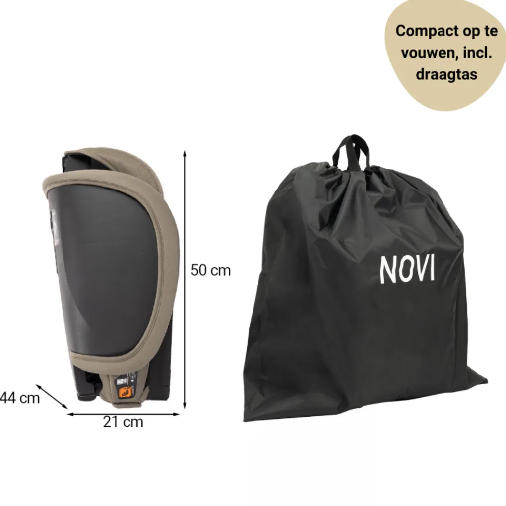 Deze I-Size autostoel is van het merk Novi. De stoel is geschikt voor kinderen vanaf 100 tot 150 cm. Dat betekent dat de stoel lekker meegroeit met jouw kindje. De Max is eenvoudig inklapbaar. Super handig als je de stoel tijdelijk niet nodig hebt of als je hem bijvoorbeeld mee wil nemen op vakantie. Schuif de Max na het inklappen in de bijgeleverde transsporttas en je bent klaar om te gaan.