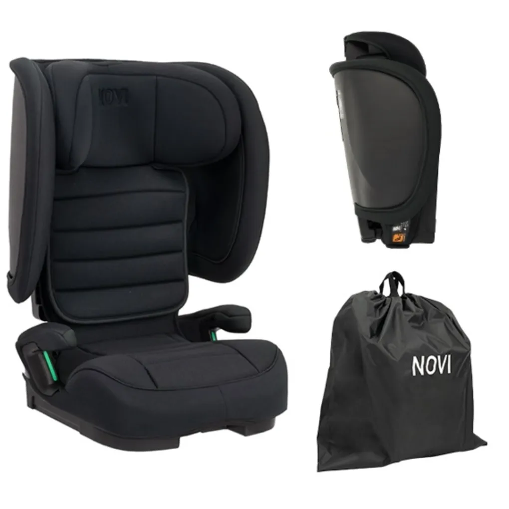 Deze I-Size autostoel is van het merk Novi. De stoel is geschikt voor kinderen vanaf 100 tot 150 cm. Dat betekent dat de stoel lekker meegroeit met jouw kindje. De Max is eenvoudig inklapbaar. Super handig als je de stoel tijdelijk niet nodig hebt of als je hem bijvoorbeeld mee wilt nemen op vakantie. Schuif de Max na het inklappen in de bijgeleverde transsporttas en je bent klaar om te gaan.