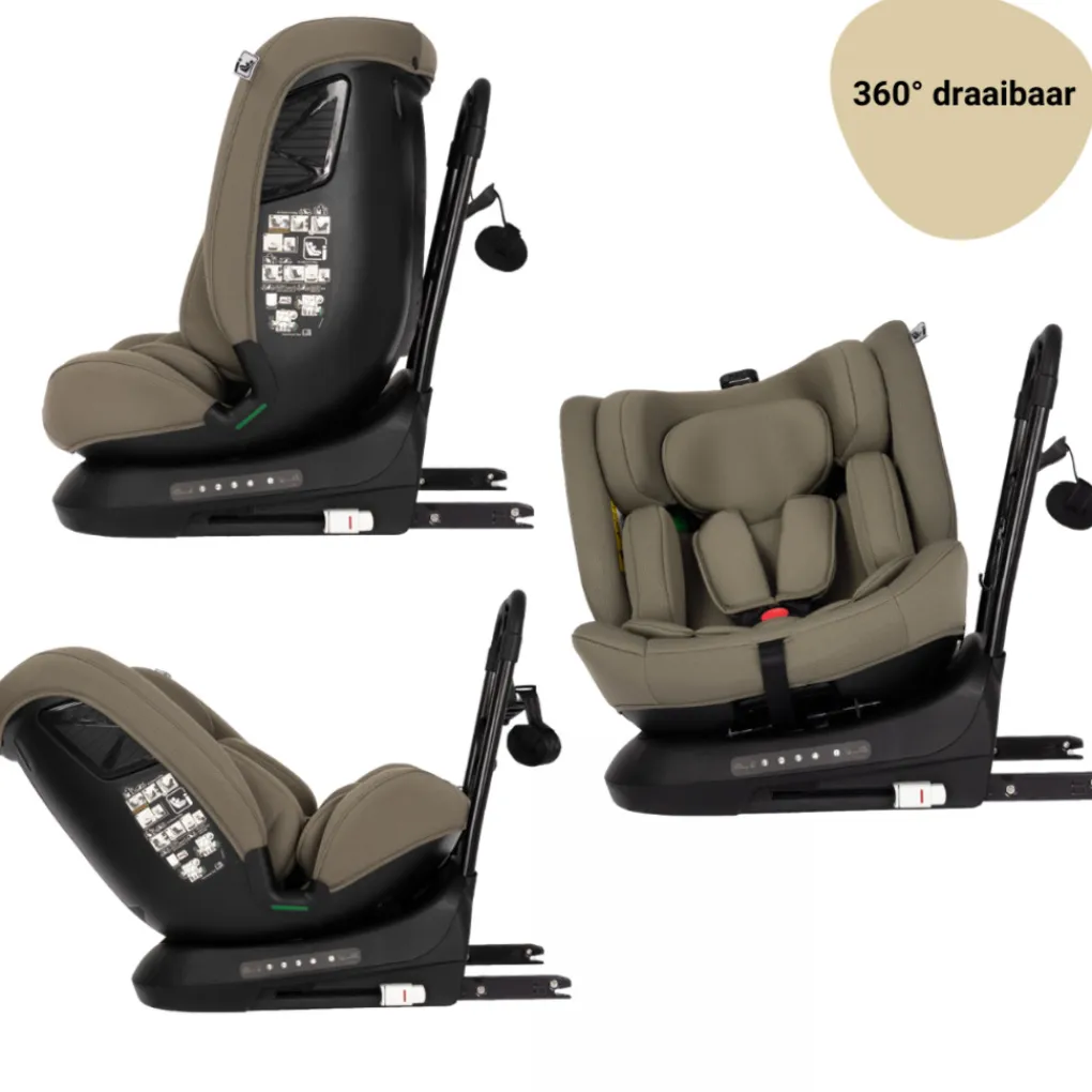 Dankzij de 360° draaibare zitting kan je je kindje door de stoel naar de deur toe te draaien, gemakkelijk in de auto zetten. Vervolgens draai je de stoel terug en ben je klaar om te gaan. Daarnaast bestaat de stoel ook uit een diepe ligstand, als de stoel in de achterwaartse positie gericht staat. Zo kan je kindje onderweg ook in slaap vallen.