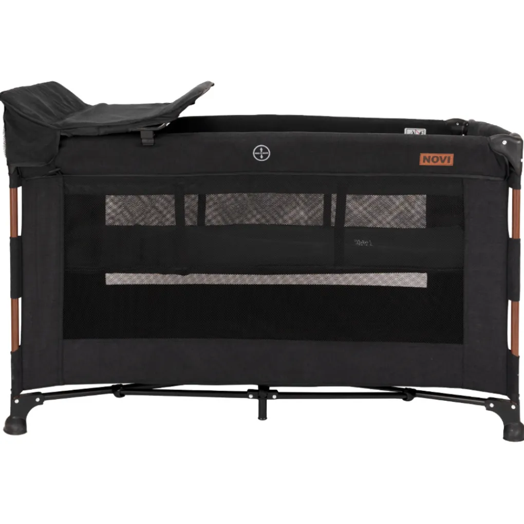 Dit campingbed is een stevig, comfortabel bedje en ideaal om mee te nemen. Nora is al geschikt vanaf de geboorte: de eerste maanden kun je gebruik maken van de bodemverhoger. Dan ligt jouw kindje extra hoog, en hoeven papa of mama niet zo diep te bukken. Zodra jouw kindje zelfstandig rechtop kan zitten, kun je de bodem verlagen zodat jouw kindje niet uit het bedje kan klimmen. Aan alle zijdes is het bedje voorzien van gaas, zodat jij je kindje goed in de gaten kunt houden en het bedje optimaal geventileerd is. Tevens wordt het reisbedje geleverd met een (afneembaar) verschoonblad: zo kun jij je kindje direct uit het bedje een schone luier geven of aankleden. Aan de zijkant van het verschoonblad zitten opbergvakjes, waar je de belangrijkste verzorgingsitems in kunt opbergen.