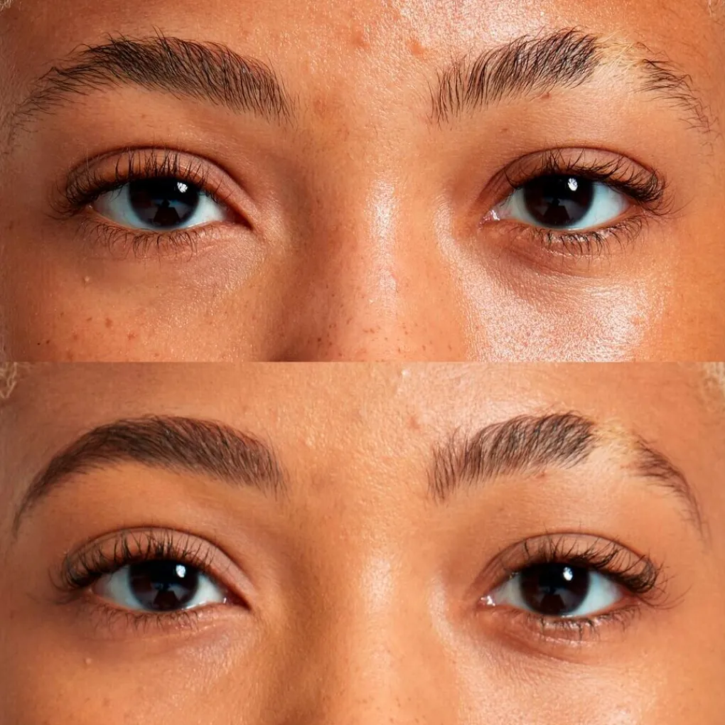 Aan de achterkant zit een ingebouwde ‘spoolie brush’. Dit is een borsteltje waarmee je je haartjes in de juiste richting borstelt. Gebruik deze vooraf om de haartjes alvast hun natuurlijke kant op te borstelen en na het bijtekenen om het pigment van het wenkbrauwpotlood te verdelen. Dit geeft je wenkbrauwen een natuurlijker en zachter effect.