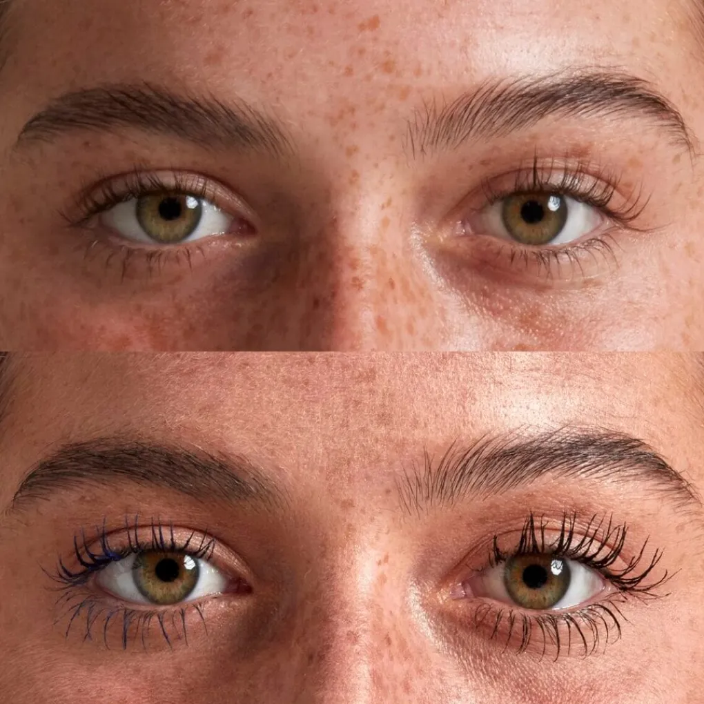 Gebruik de zandlopervorm van de borstel om de wimpers te scheiden en te liften. Draai de borstel een kwartslag om met de ronde vorm volume te creëeren. Herhaal de stappen voor een nog heftiger effect, laag na laag.