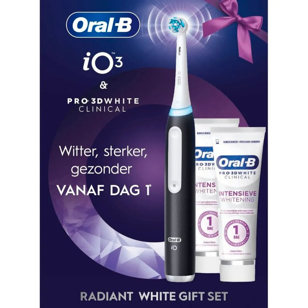 Oral-B iO3 Radiant White Gift Set;Volledige Omschrijving|Oral-B IO Elektrische Tandenborstel Whitening Special pack 1 iO3 + 2 3DW Clinical 75ml