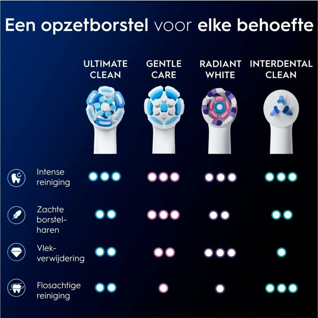 • Exclusief ontworpen en gegarandeerd geschikt is voor je Oral-B iO elektrische tandenborstel