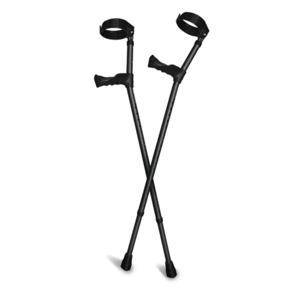 De elleboogkrukken zwart zijn verstelbare krukken met een ergonomisch handvat. Dankzij de 18 verstelmogelijkheden zijn de krukken goed op uw lichaamslengte aan te passen. Het handvat kan vanaf de grond gemeten ingesteld worden van 66 tot 110 cm. Daarnaast is ook het manchet in hoogte verstelbaar. Verder zorgt het ergonomische handvat ervoor dat de druk juist word verdeeld. Hierdoor zal u comfortabeler lopen en mindersnel last van uw handen of polsen krijgen. Een andere eigenschap van de krukken is het gesloten manchet. Het manchet sluit volledig rondom de onderarm waardoor de krukken makkelijk te verplaatsen zijn en niet snel vallen. Daarnaast kunt u nog normaal uw handen gebruiken zonder dat de krukken zullen vallen. Tot slot passen de krukken bij elke outfit dankzij de neutrale kleur. Dit product is een medisch hulpmiddel.
