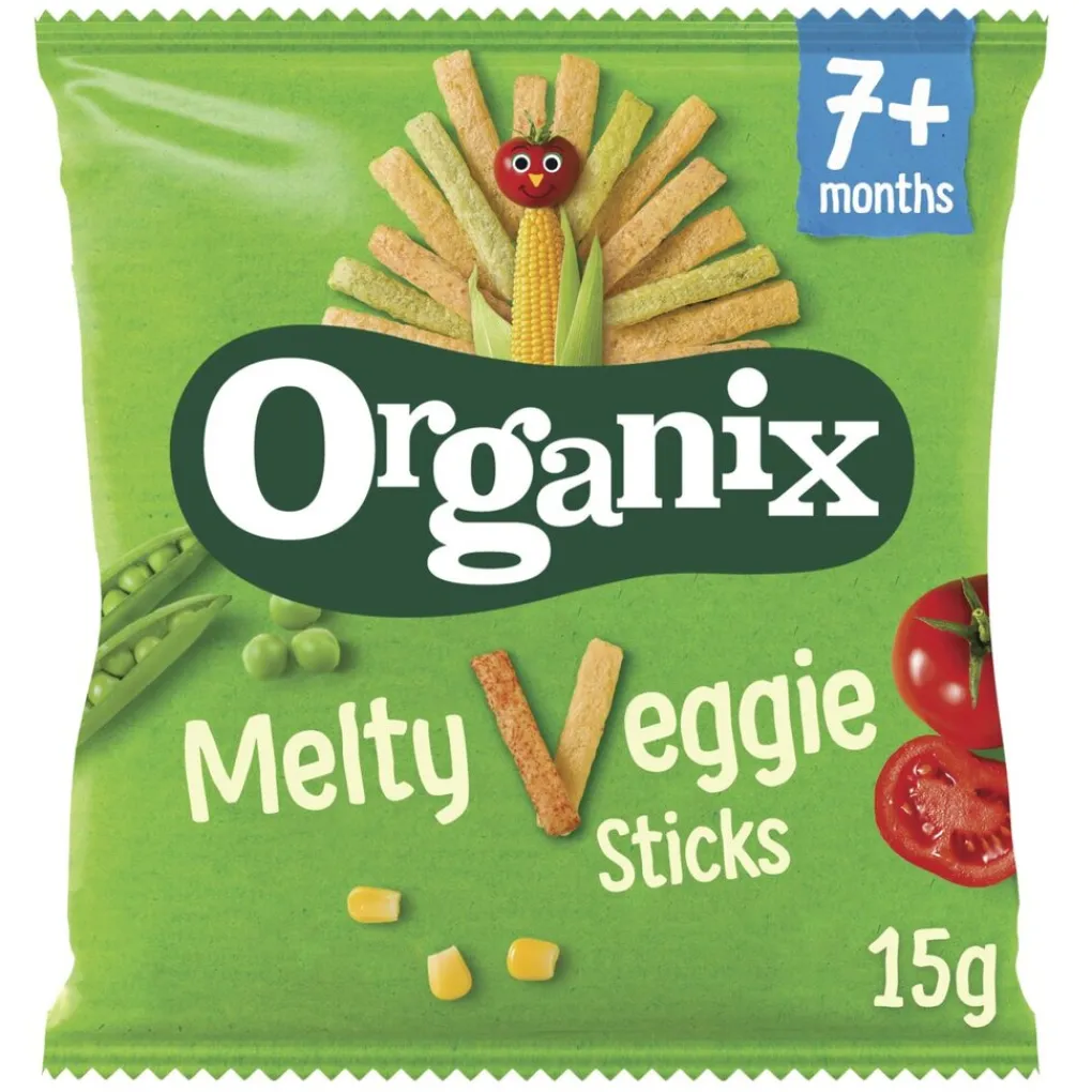 Organix gelooft dat kleine kinderen recht hebben op gezond eten. Daarom maken ze pure voeding, gemaakt van de beste en lekkerste biologische ingrediënten zonder onnodige toevoegingen, zoals deze Organix 7+M Melty Veggie Groentesticks.