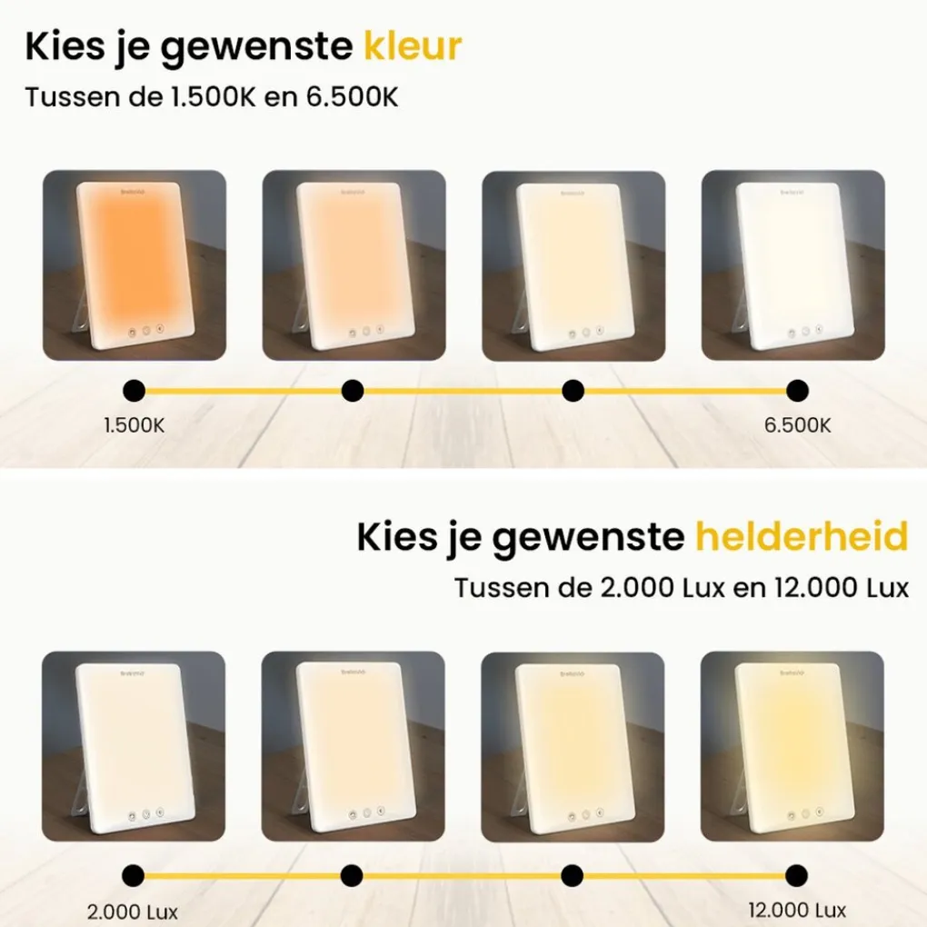 De BrellaVio Daglichtlamp PRO simuleert natuurlijk daglicht en biedt helder, aangenaam licht. Een praktische oplossing voor momenten met weinig zonlicht, zoals op donkere dagen. Dankzij de verstelbare lichtkleur, helderheid en timer stem je het licht eenvoudig af op jouw persoonlijke voorkeur.