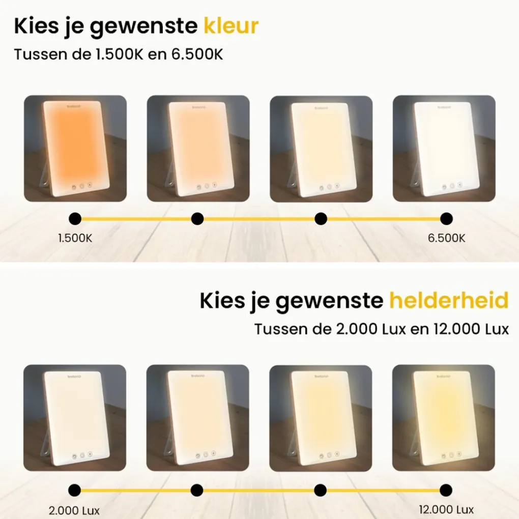 De BrellaVio Daglichtlamp PRO simuleert natuurlijk daglicht en biedt helder, aangenaam licht. Een praktische oplossing voor momenten met weinig zonlicht, zoals op donkere dagen. Dankzij de verstelbare lichtkleur, helderheid en timer stem je het licht eenvoudig af op jouw persoonlijke voorkeur.
