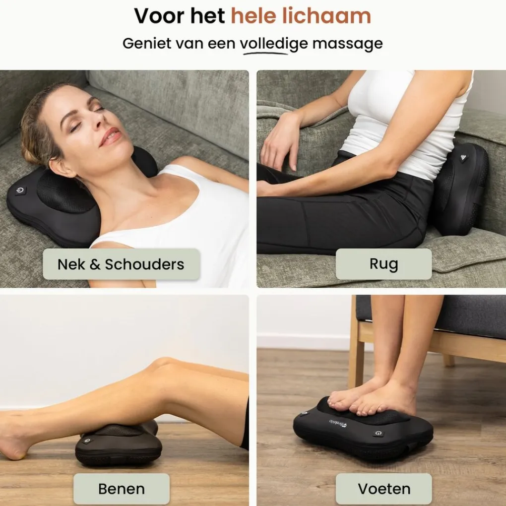 Is dit massagekussen geschikt voor alle lichaamstypes?: Ja, het kussen is ontworpen om comfortabel te zijn voor alle lichaamstypes.