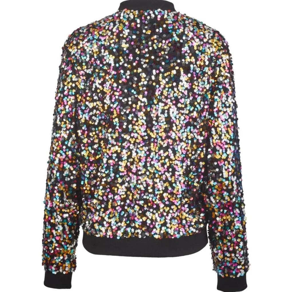 Til je carnavalsoutfit naar de next level met dit Pailletten Bomberjack! Dit trendy jack is volledig bedekt met glinsterende, gekleurde pailletten en geeft elke look een feestelijke touch. Perfect voor carnaval!