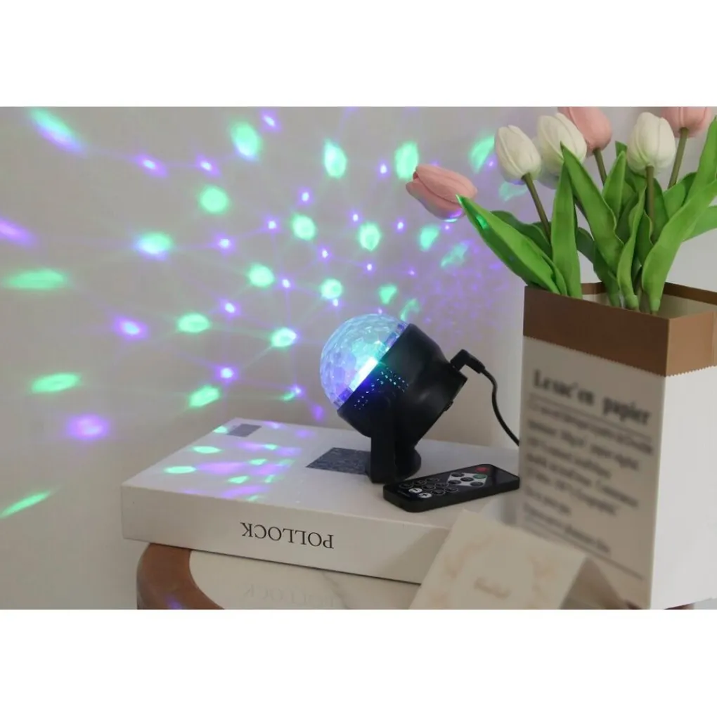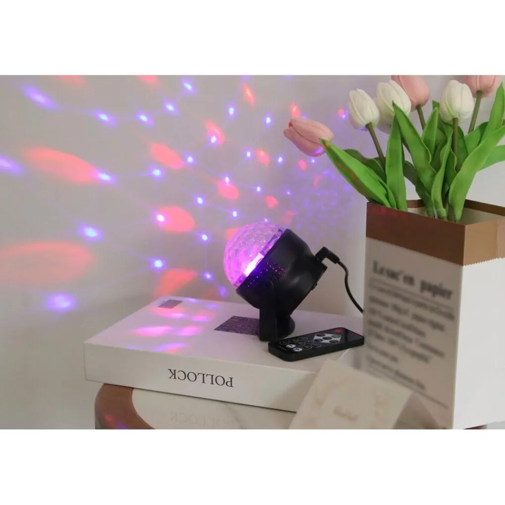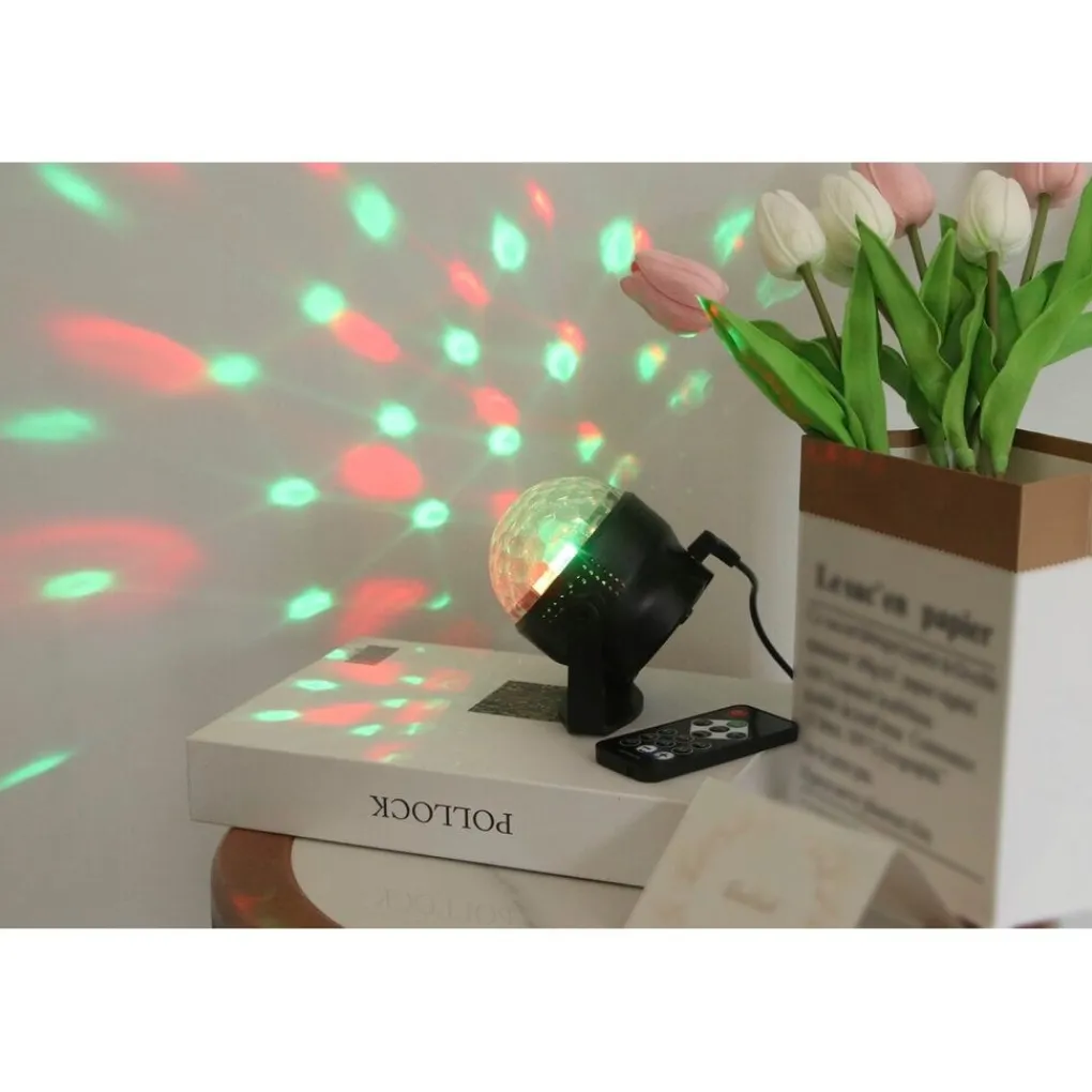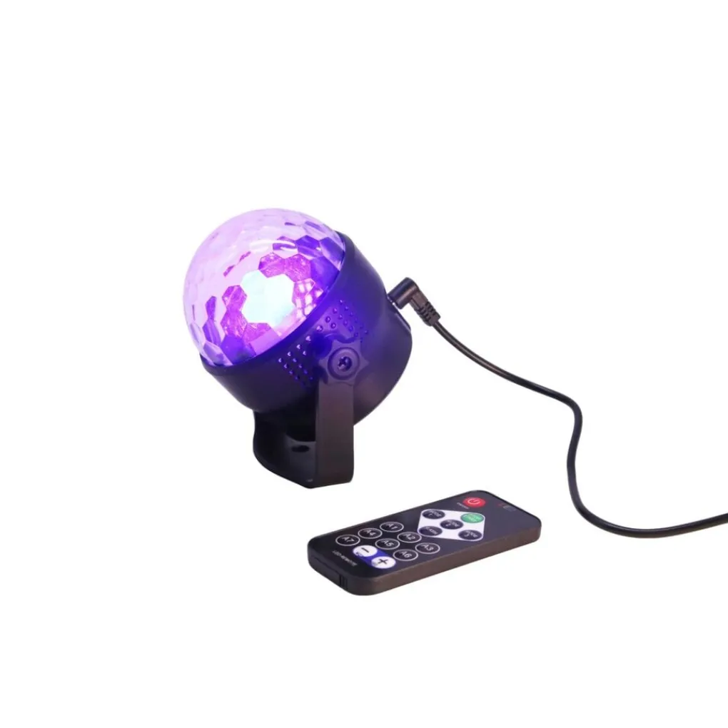 Met de meegeleverde afstandsbediening regel je vlot de kleuren van het licht en de snelheid waarmee de discobal ronddraait.
