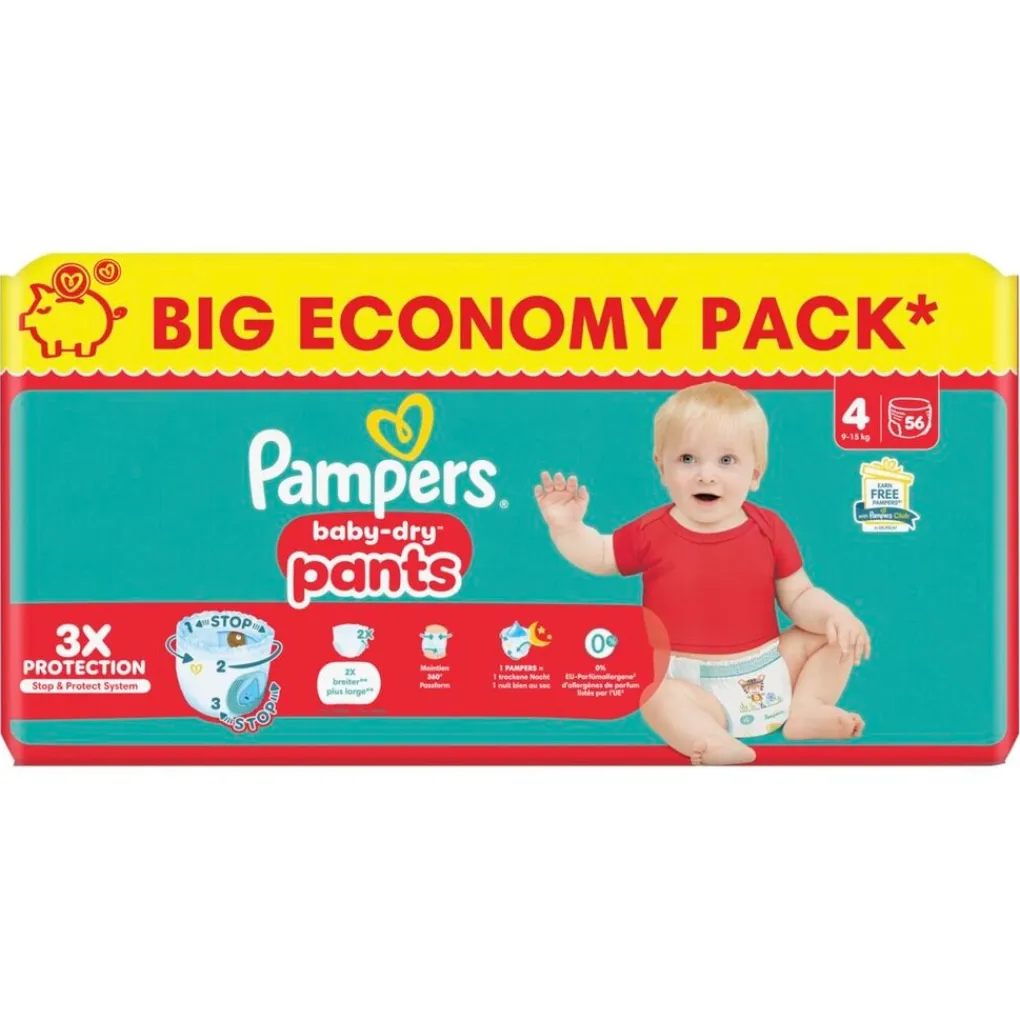 Pampers Baby-Dry Pants Luierbroekjes Maat 4, 56 Luierbroekjes, 9kg-15kg;Volledige Omschrijving|Pampers Baby-Dry Pants Maat 4, 56 Luierbroekjes, 9kg-15kg