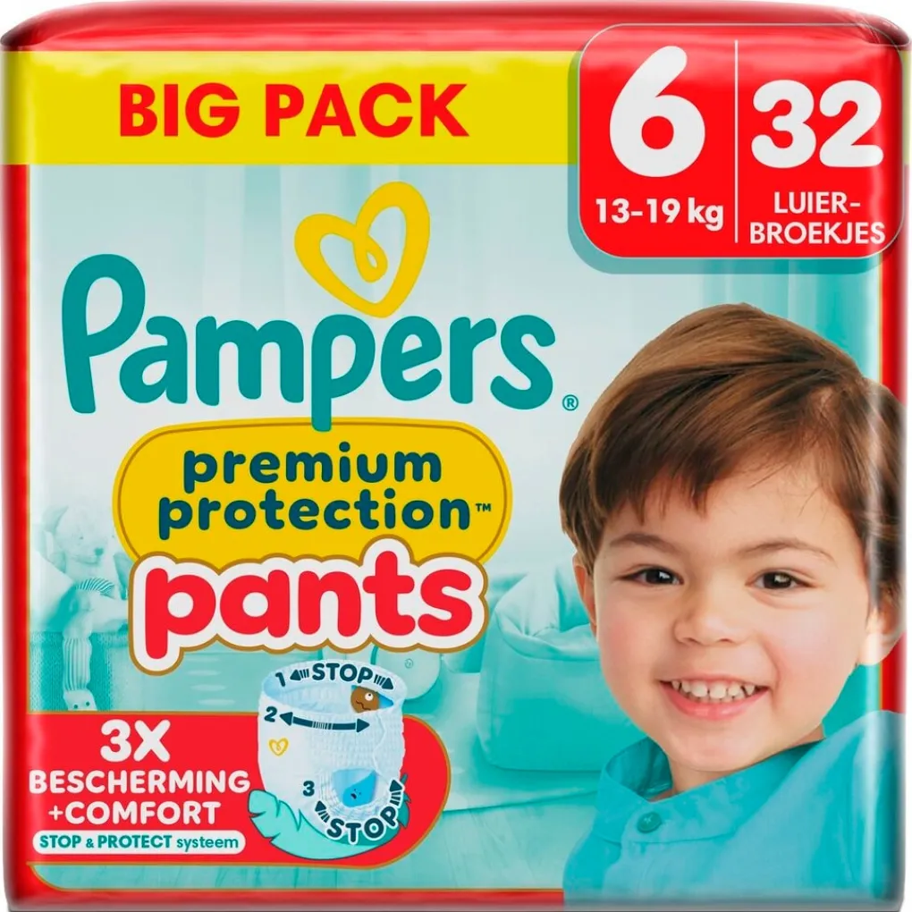 Pampers Premium Protection Pants Maat 6, 32 Luierbroekjes, 13kg-19kg;Volledige Omschrijving|Pampers Premium Protection Pants Maat 6, 32 Luierbroekjes, 13kg-19kg