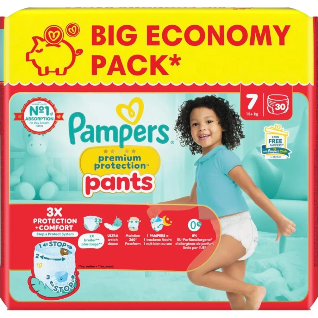 Pampers Premium Protection Pants Maat 7, 30 Luierbroekjes, 15kg+;Volledige Omschrijving|Pampers Premium Protection Pants Luiers Big Pack S7 30CT