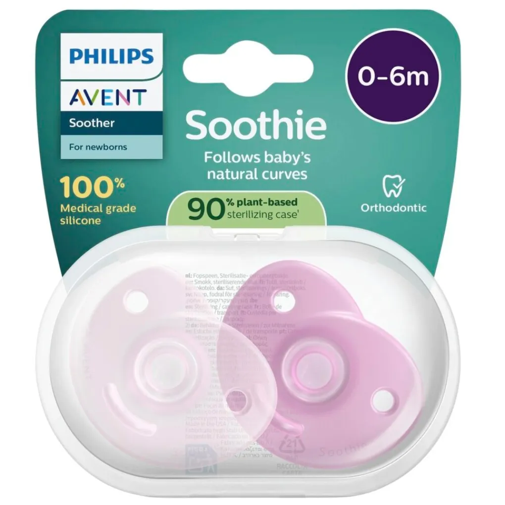 De Philips Avent Soothie fopspeen is geschikt voor baby’s tot en met 6 maanden. Gebruik de fopspeen alleen onder toezicht.