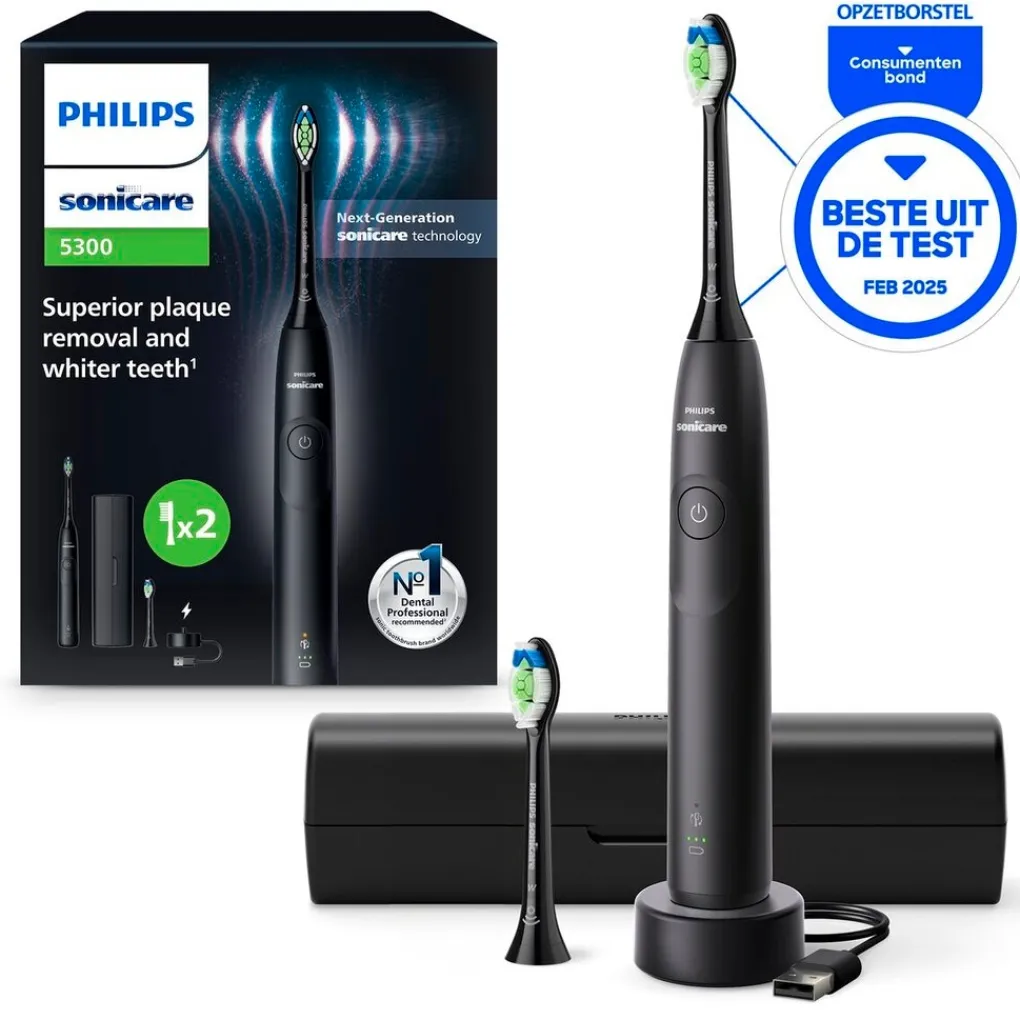Geniet van wittere tanden* met de Philips Sonicare 5300 Series HX7101/03 Elektrische Tandenborstel.