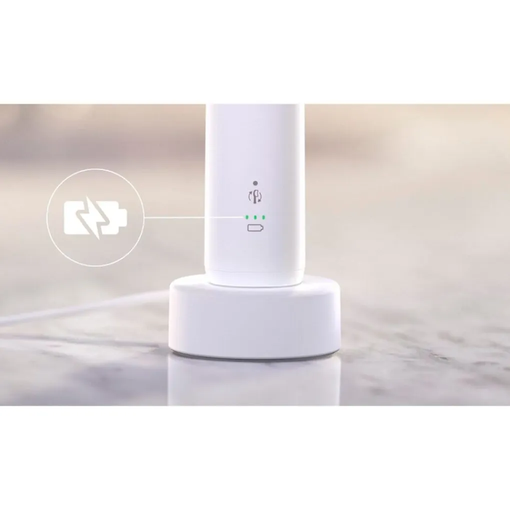 De tandenborstel gaat tot wel drie weken mee op een volle accu! Ook handig voor op vakantie.