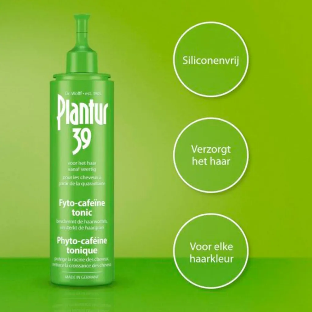 Plantur 39 bevat het Phyto-Cafeïnecomplex, dat je haarwortels tegen hormoongevoelige uitputting beschermt. Het voorkomt dat testosteron de haarwortels beschadigt en zo de energievoorziening aantast.