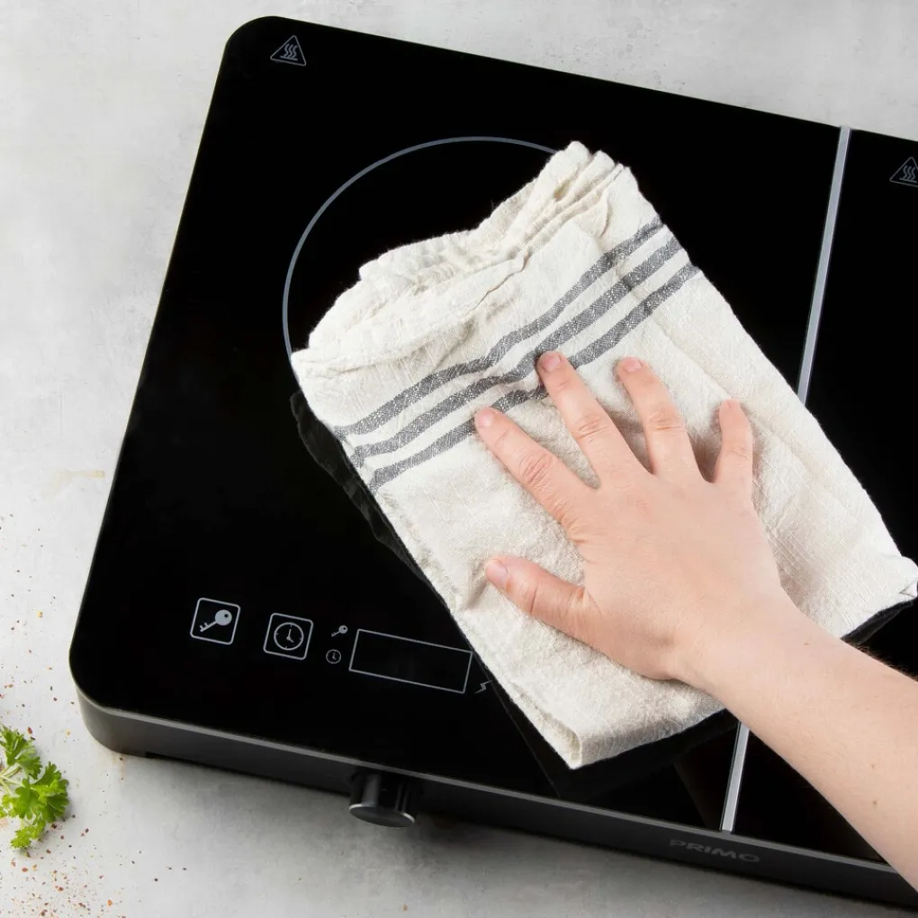 - Zorg er bij het schoonmaken voor dat je eerst de stekker uit het stopcontact verwijdert. Laat vervolgens de kookzones afkoelen alvorens de inductie kookplaat schoon te maken. Maak gebruik van een niet schurende doek of spons.