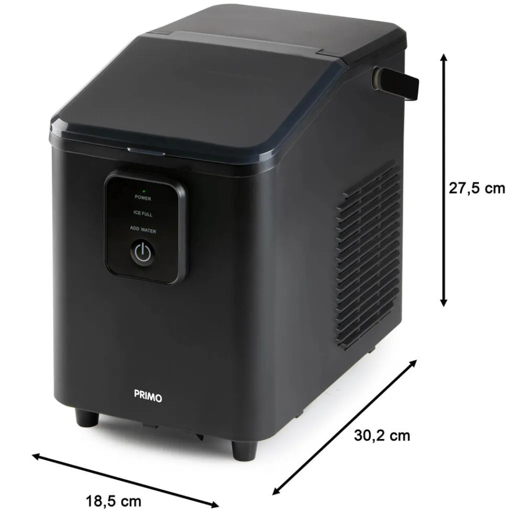 Met de PRIMO PR409IB ijsblokjesmachine heb je altijd razendsnel ijs binnen handbereik voor al je koele drankjes. Of je nu een frisse cocktail of een verfrissend glas water wilt serveren, met deze ijsblokjesmaker heb je in enkele minuten perfect gevormde ijsblokjes. Het mat zwarte design en de eenvoudige bediening maakt deze ijsmaker een waardevolle aanvulling in je keuken.