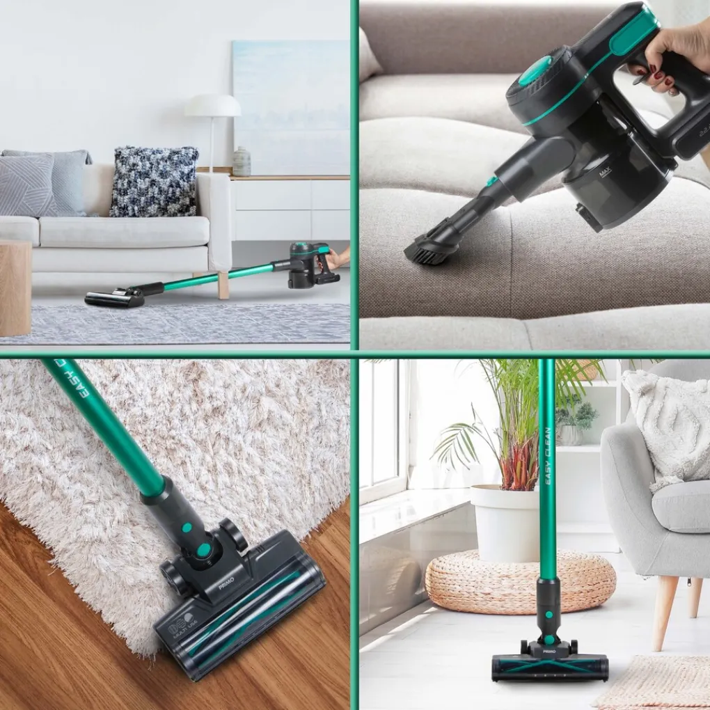 Snel even stofzuigen, het is geen probleem met de PRIMO PR509SV 3-in-1 accu steelstofzuiger zonder zak. Met de gemotoriseerde vloerborstel verwijder je met gemak het vuil van de vloer, dankzij de meegeleverde kierenzuiger en stofborstel bereik je ook moeilijk bereikbare plaatsen. En voor delicate vloeren krijg je bij dit toestel ook nog een super zachte rolborstel geleverd. Het efficiënte cycloon systeem in combinatie met de super krachtige 22.2 V Lithium-Ion batterij zorgt ervoor dat je in een mum van tijd de kamer stofzuigt. De PR509SV is draadloos, dit zorgt voor complete bewegingsvrijheid en met de flexibele stofzuigkop kom je gemakkelijk onder kasten en banken.