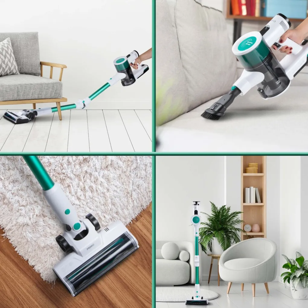 Snel even stofzuigen, het is geen probleem met de PRIMO PR510SV 3-in-1 accu steelstofzuiger zonder zak. Met de gemotoriseerde vloerborstel verwijder je met gemak het vuil van de vloer, dankzij de meegeleverde kierenzuiger en stofborstel bereik je ook moeilijk bereikbare plaatsen. En op de koop toe, wordt dit toestel geleverd met een flexibele steel, hierdoor kan je ook makkelijk onder kasten, zetels, bedden, … Het efficiënte cycloon systeem in combinatie met de super krachtige 22.2 V Lithium-Ion batterij zorgt ervoor dat je in een mum van tijd de kamer stofzuigt. De PR510SV is draadloos, dit zorgt voor complete bewegingsvrijheid en met de flexibele stofzuigkop kom je gemakkelijk onder kasten en banken.