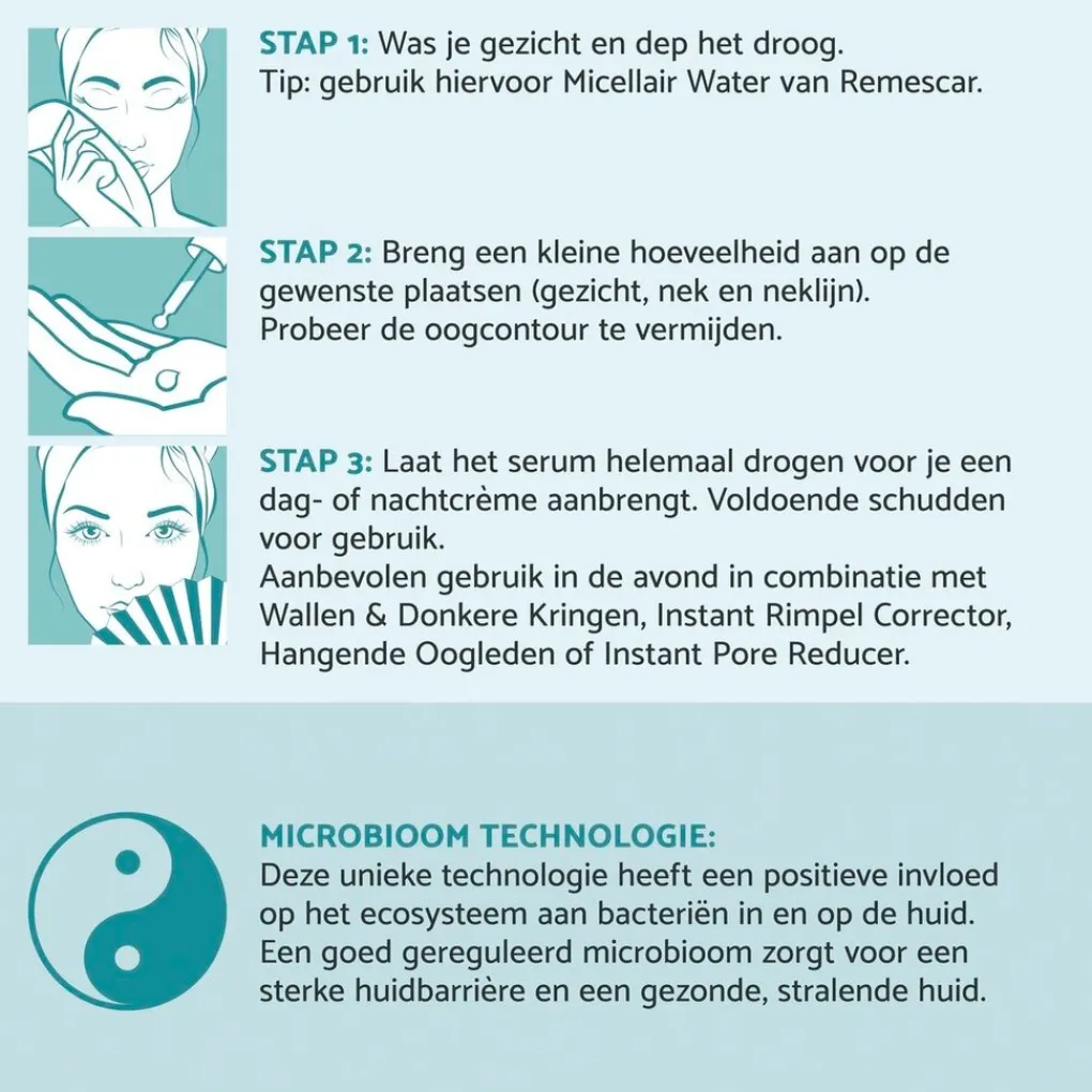 De integratie van de Microbioom Technologie in het Remescar Collageen Serum zorgt voor een gebalanceerd huidmicrobioom wat resulteert in een gezonde en stralende huid.