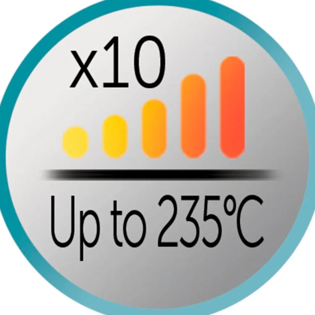 Met de tien verschillende temperatuurstanden, variërend van 150°C tot 235°C kun je de warmte afstemmen op je haartype. Gebruik de temperatuurboost als je snel gebruik wilt maken van de hoogste temperatuur. De stijlstang is in slechts vijftien seconden klaar voor gebruik, zodat je meteen aan de slag kunt.