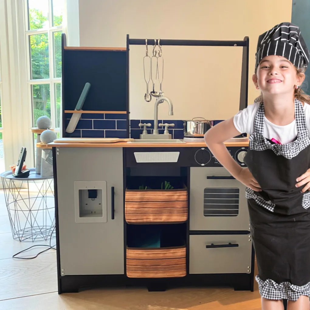 Rijoka Houten Speelkeuken Kinderkeuken met Krijtbord en Kookgereedschap Sale