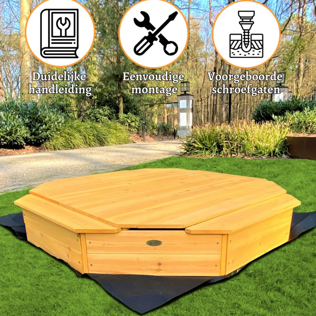 Rijoka Houten Zandbak met 4 Bankjes Inclusief Deksel en Grondzeil Speeltoestel Hot