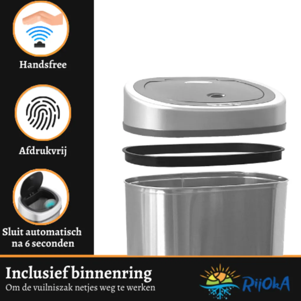 Rijoka Prullenbak met Sensor 12 Liter RVS Soft Close Vingerafdrukvrij Sale