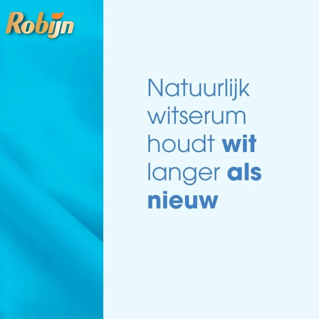 Met Robijn Klein & Krachtig Stralend Wit Vloeibaar Wasmiddel met white serum geniet je langer van prachtig wit wasgoed. Het white serum zorgt ervoor dat kleuren langer mooi blijven, omdat het pillen en pluizen uit kleding verwijdert.