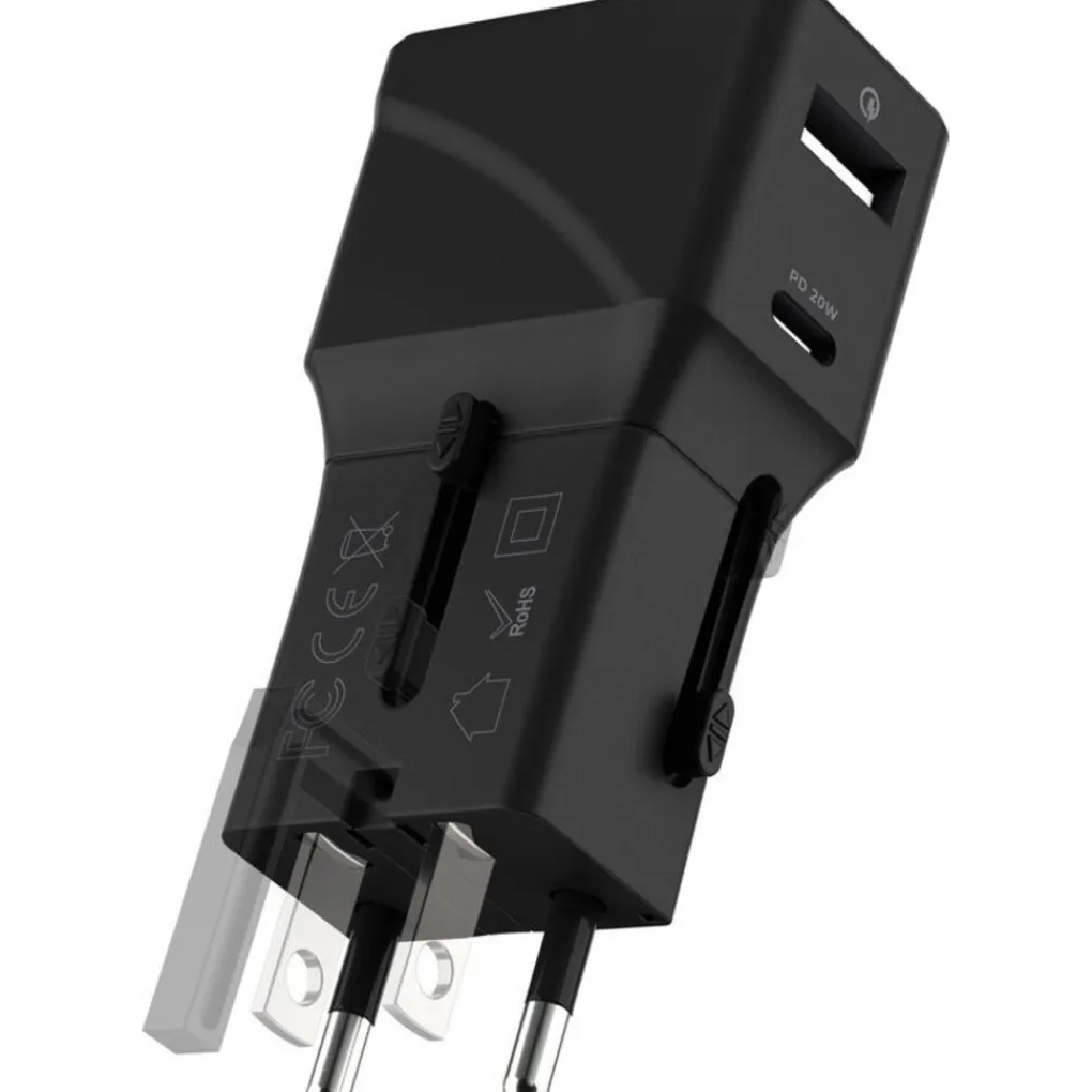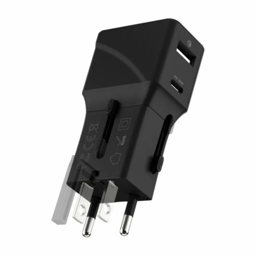 Deze wereldstekker telt maar 2 USB poorten, 1x USB-A en 1x een USB-C. Deze poorten zijn voorzien van Quick Charge en Power Delivery wat betekent dat je razendsnel kan opladen met zowel Apple als Android apparaten.